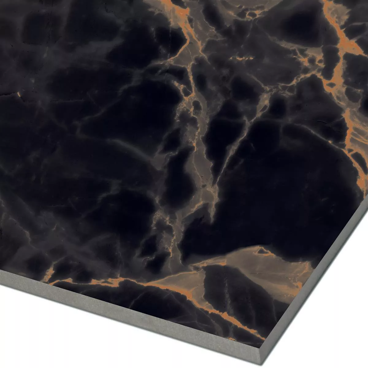 Bodenfliese Livingstone Schwarz Gold Poliert 120x120cm