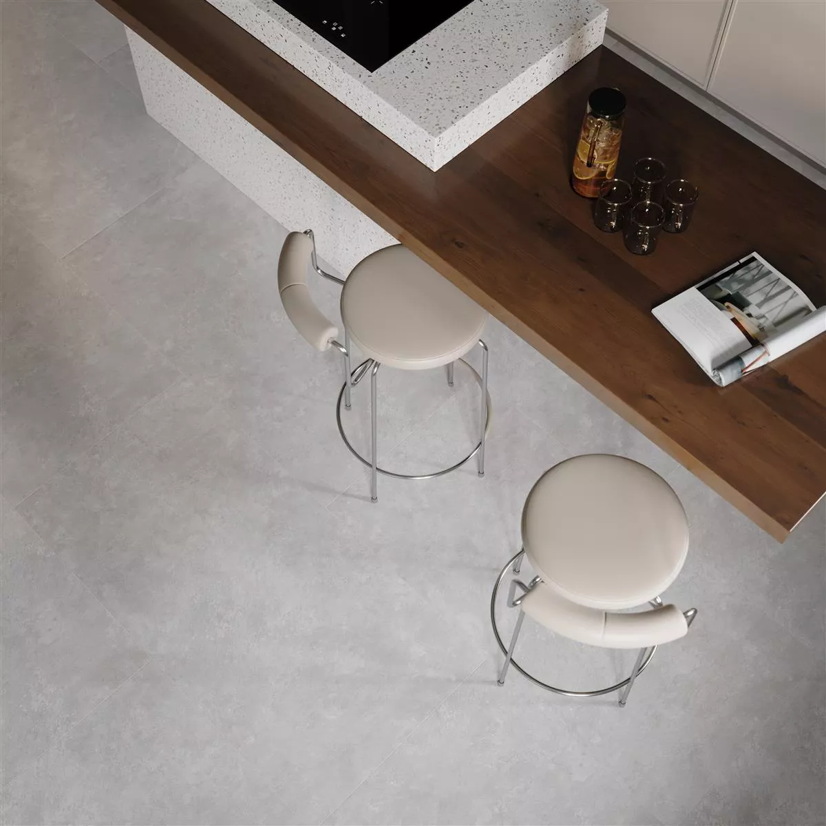 Die Feinsteinzeug Bodenfliese Triton in elegantem Grau vereint modernes Design mit hoher Funktionalität. Mit ihrer ansprechenden Betonoptik schafft sie eine zeitlose und urbane Atmosphäre, die sich harmonisch in unterschiedlichste Wohn- und Arbeitsbereiche einfügt. Die matte, glasierte Oberfläche verleiht der Fliese nicht nur eine edle Haptik, sondern sorgt auch für eine pflegeleichte Reinigung.