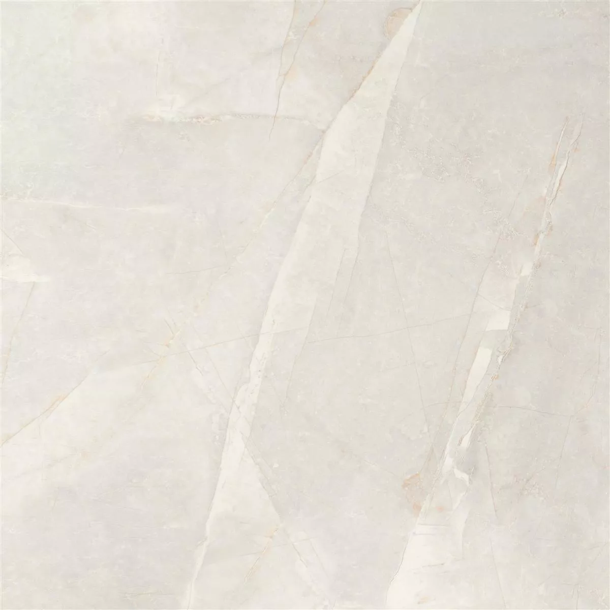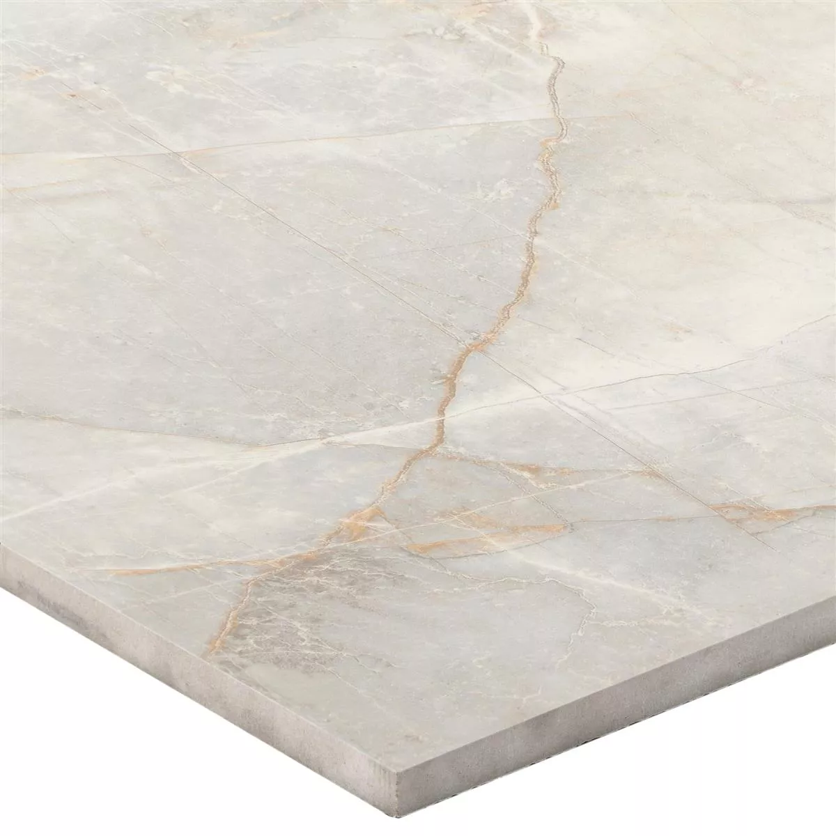 Bodenfliese Novinger in Hellgrau mit schöner Natursteinoptik. Die Bodenfliese weist eine polierte Oberfläche auf und hat ein quadratisches Fliesenformat.