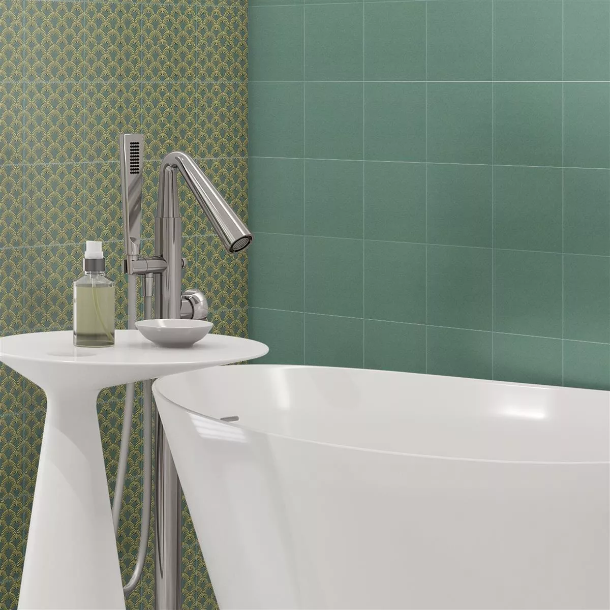 Gestalten Sie Ihr Zuhause mit diesen grünen Quadratfliesen neu und bringen Sie mit der Blumenoptik eine natürliche Frische in Ihre Räume. Schaffen Sie eine Umgebung, die nicht nur mit Stil, sondern auch mit einem Hauch von Naturverbundenheit beeindruckt.