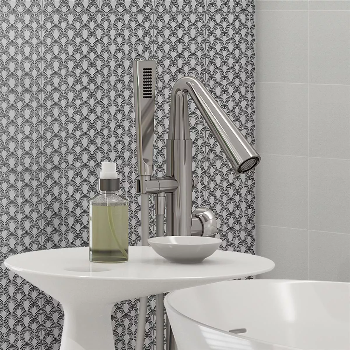 Entdecken Sie die zeitlose Eleganz unserer Wand- und Bodenfliesen mit schwarzen floralen Ornamenten aus glasiertem Feinsteinzeug und verleihen Sie Ihren Räumen einen Hauch von Raffinesse. Diese Fliesen kombinieren stilvolles Design mit funktionalen Eigenschaften und schaffen eine elegante Atmosphäre in Wohnräumen, Küchen, Bädern und Duschen.