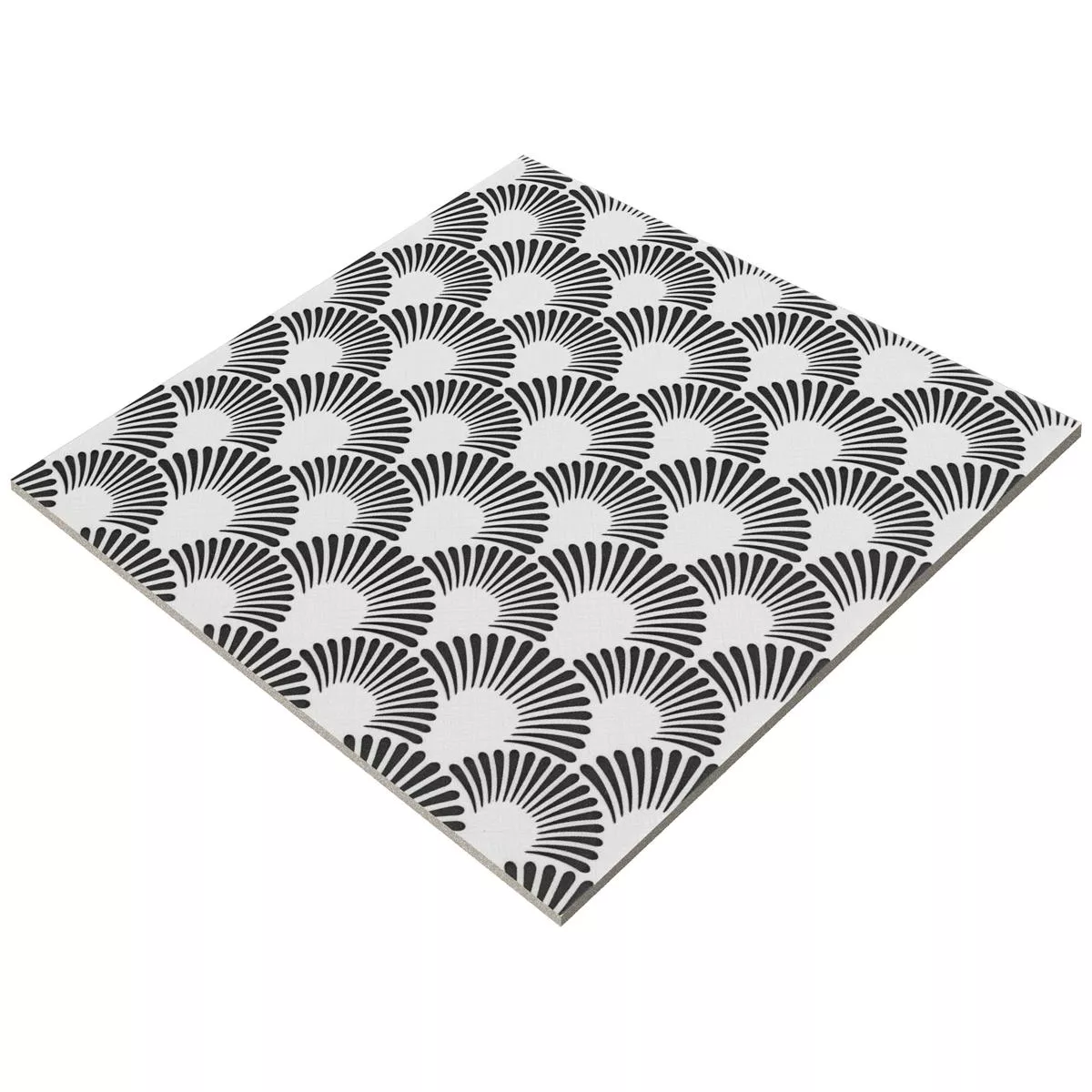 Bodenfliesen Zementoptik Wildflower Schwarz Dekor 18,5x18,5cm