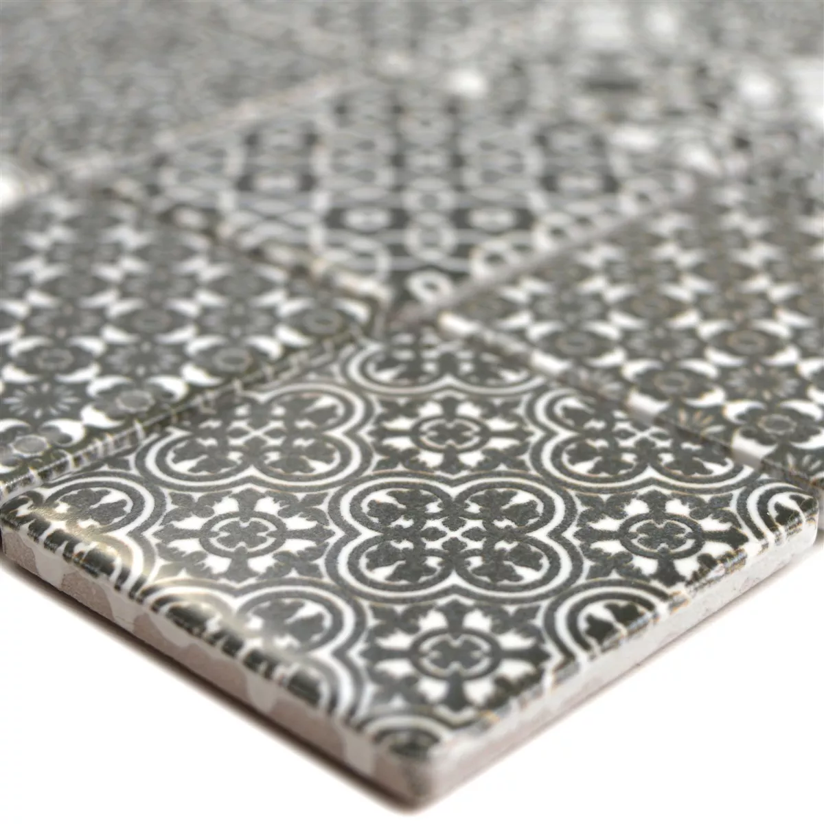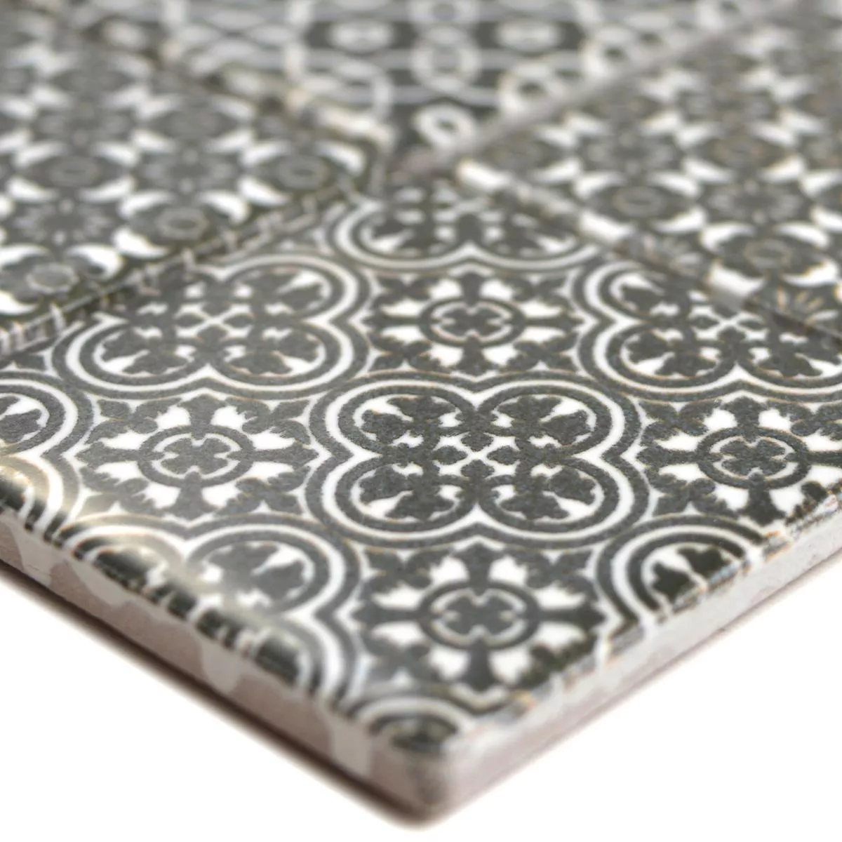 Muster von Keramik Mosaikfliesen Daymion Retrooptik Quadrat Schwarz 47