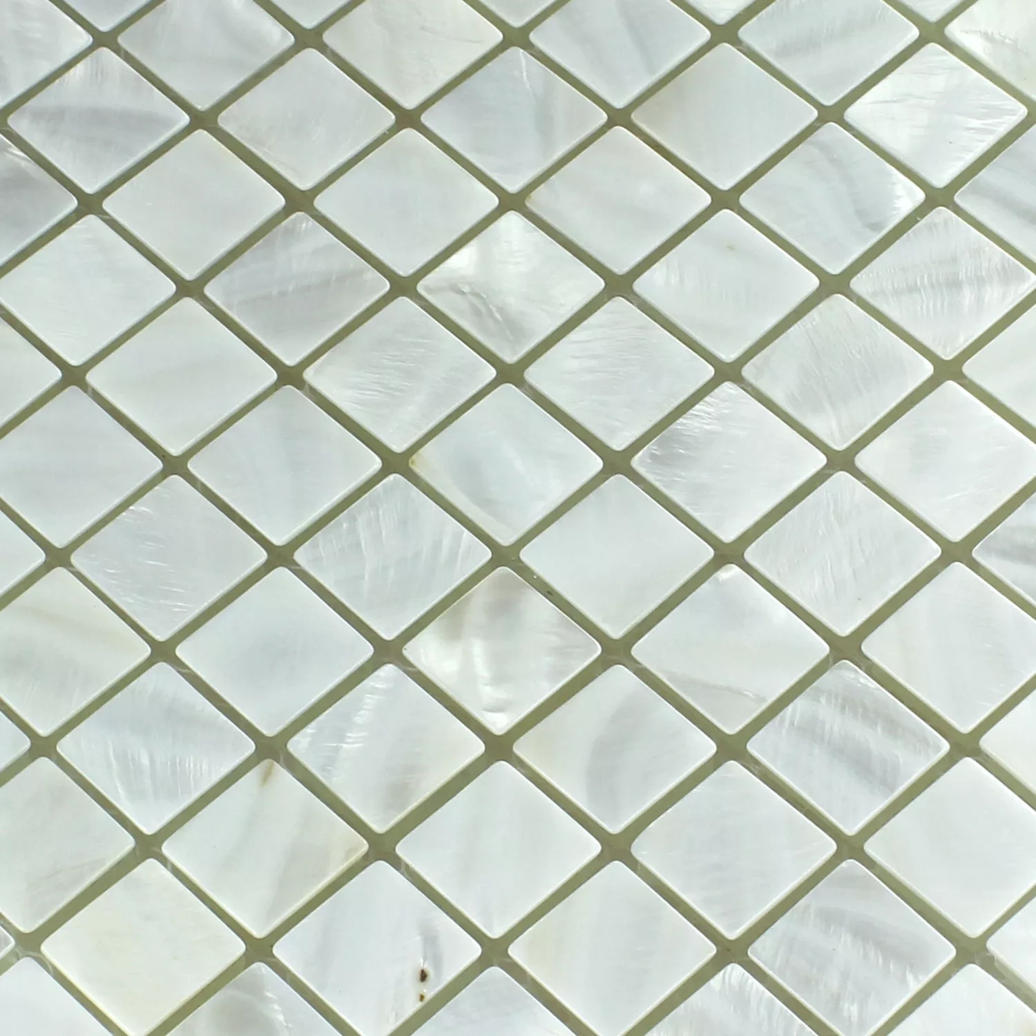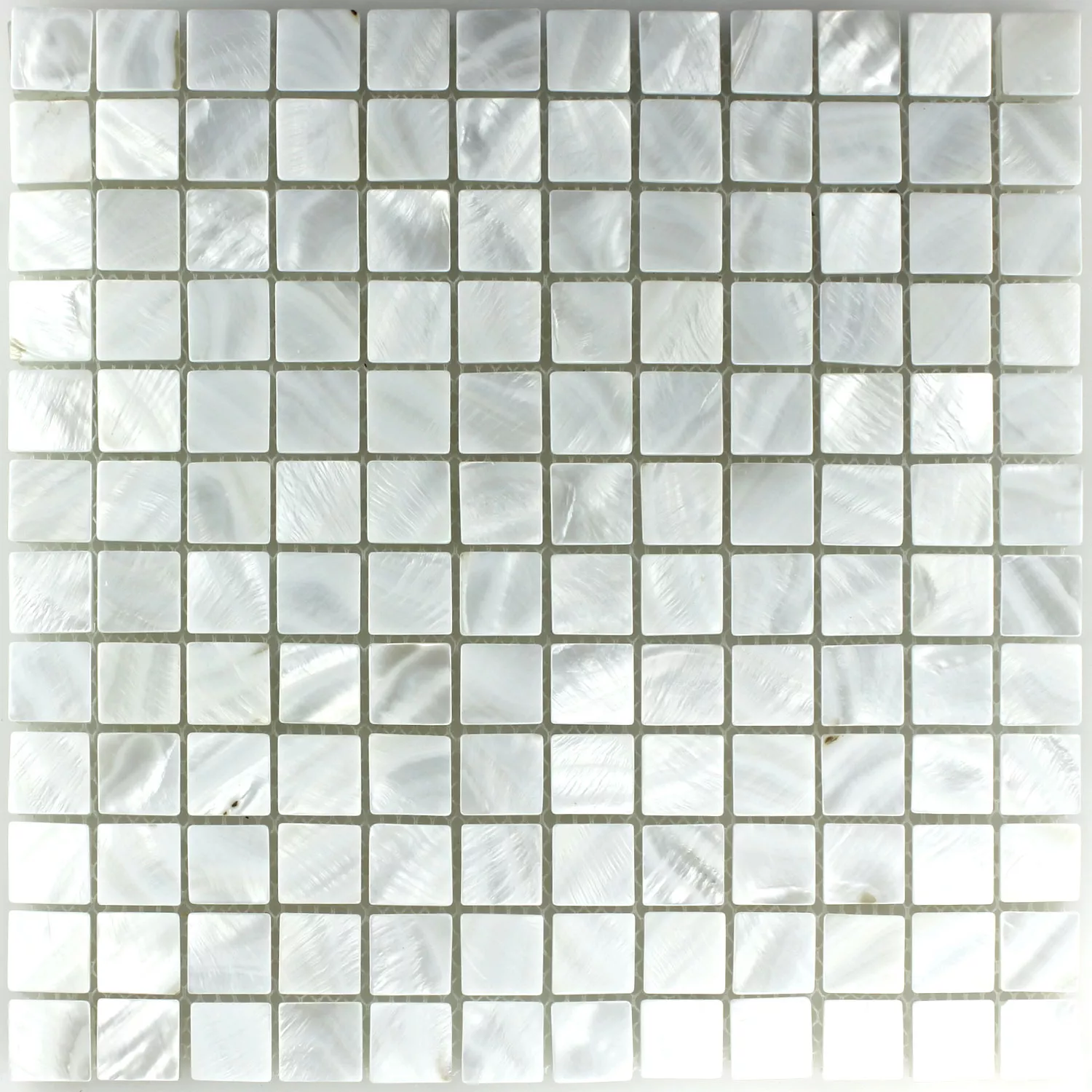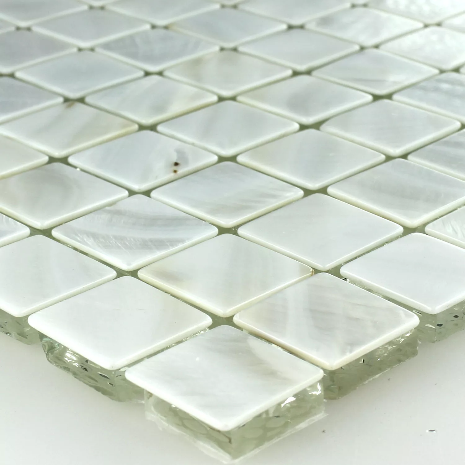 Muster von Mosaikfliesen Glas Perlmutt Effekt Elfenbein Weiss