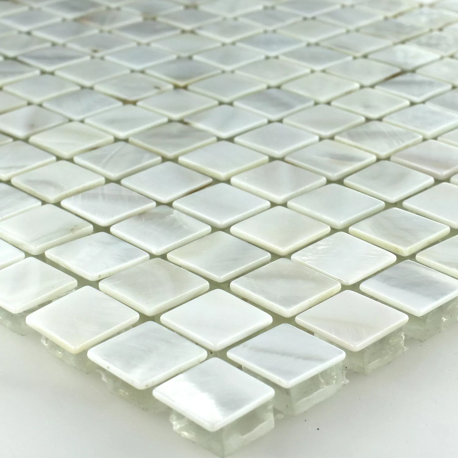 Muster von Mosaikfliesen Glas Perlmutt Effekt Elfenbein Weiss