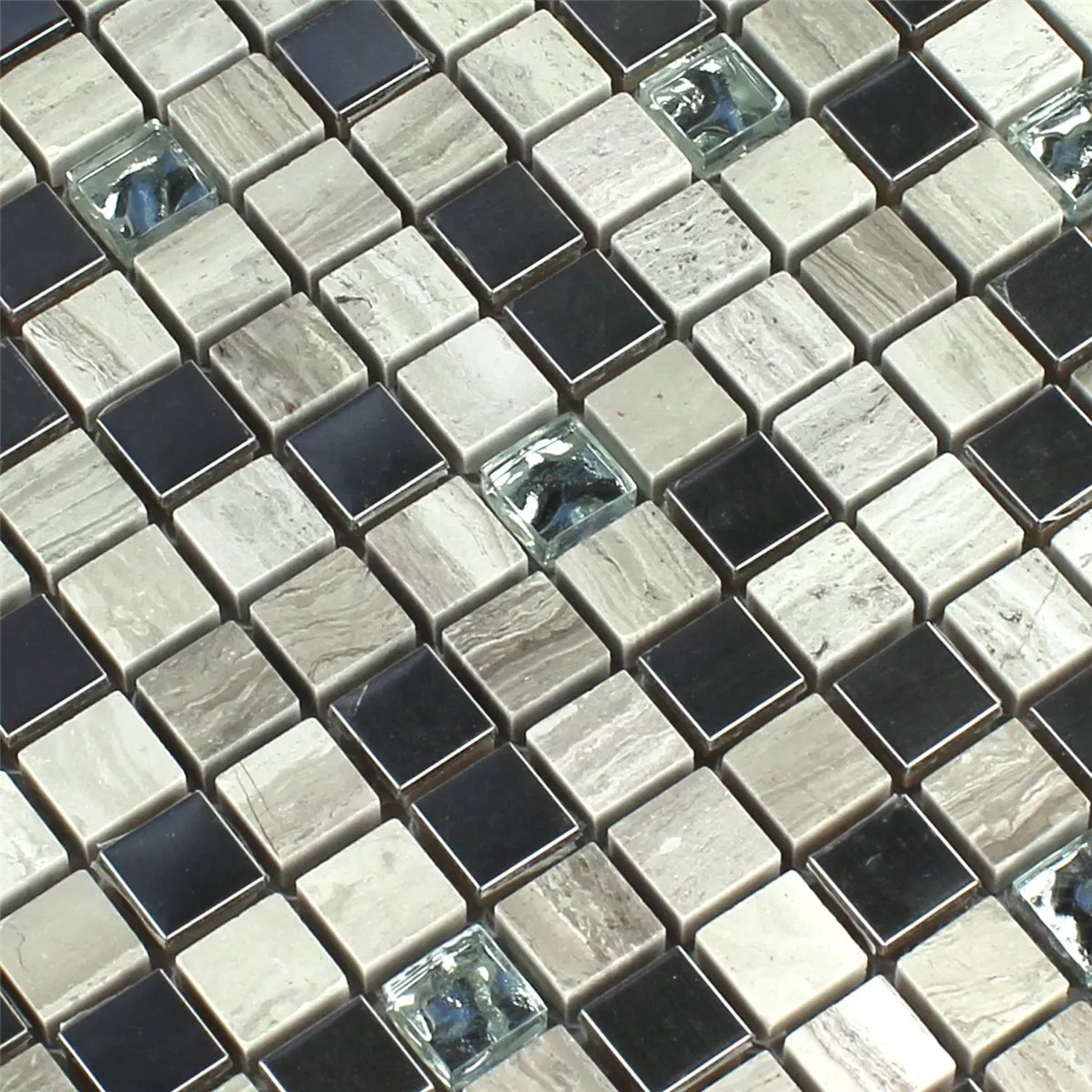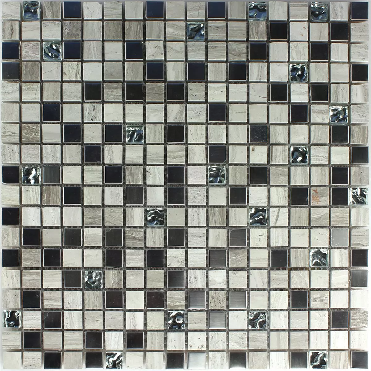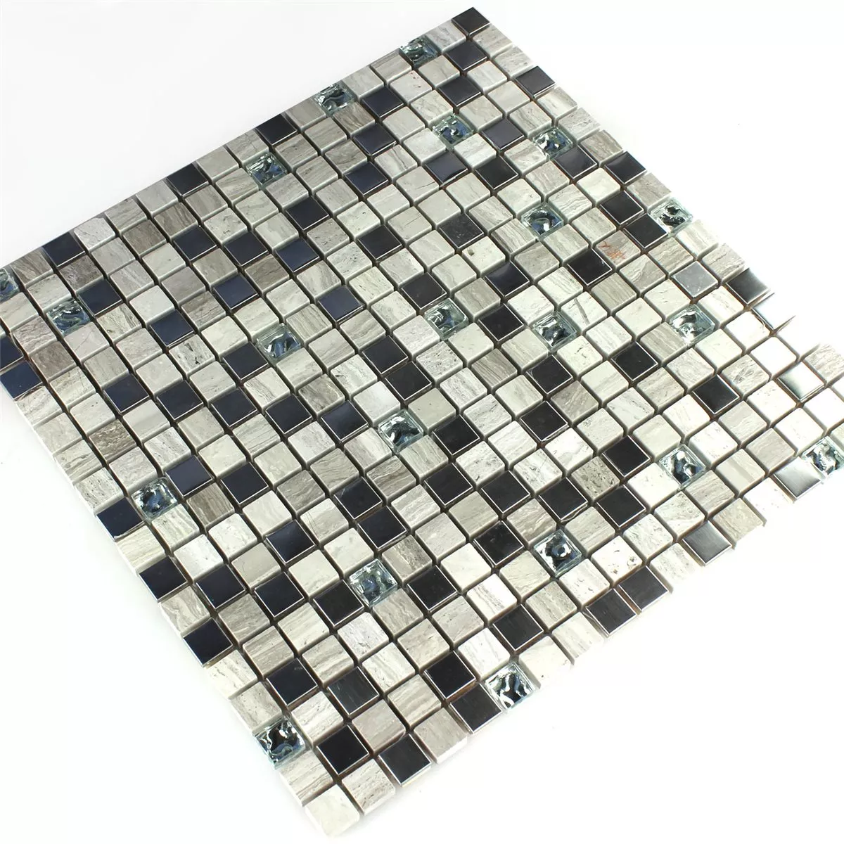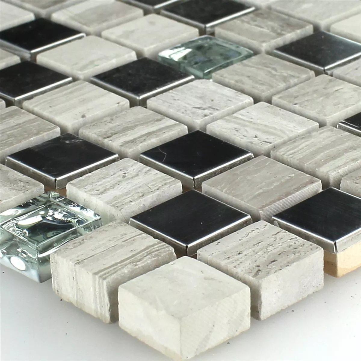 Muster von Mosaikfliesen Glas Sandstein Edelstahl Grau