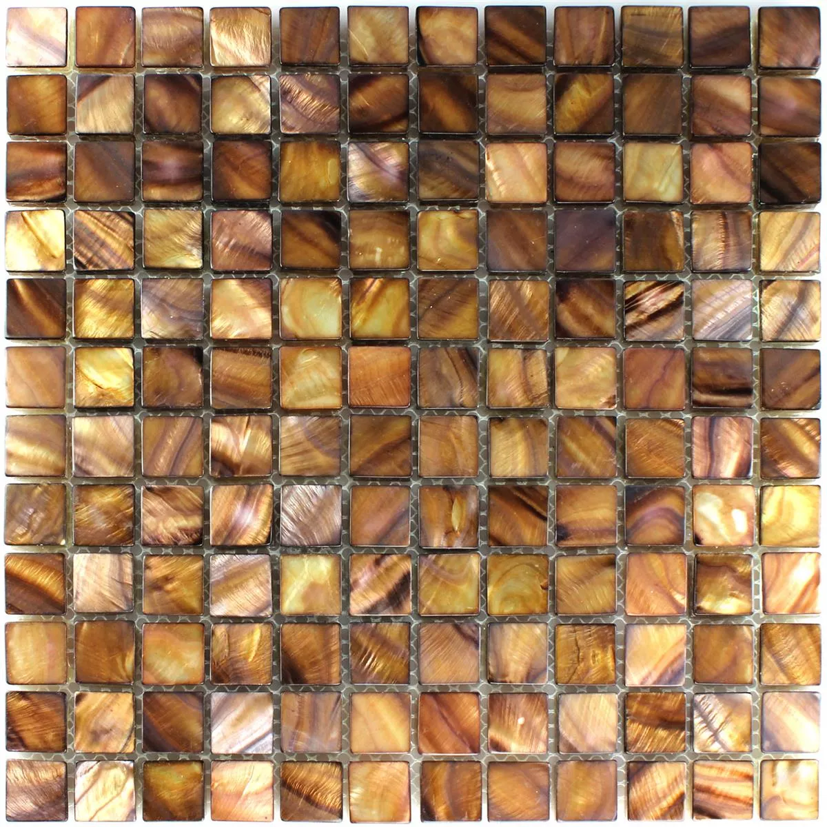 Muster von Mosaikfliesen Glas Perlmutt Effekt Braun Gold