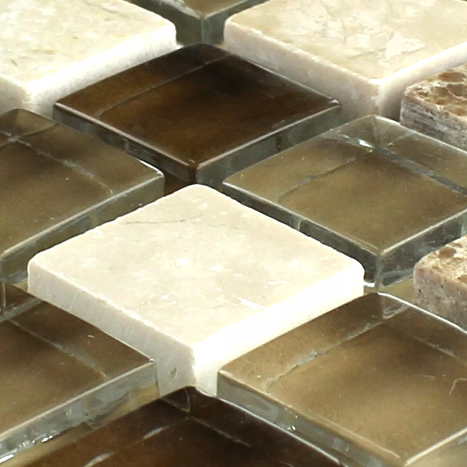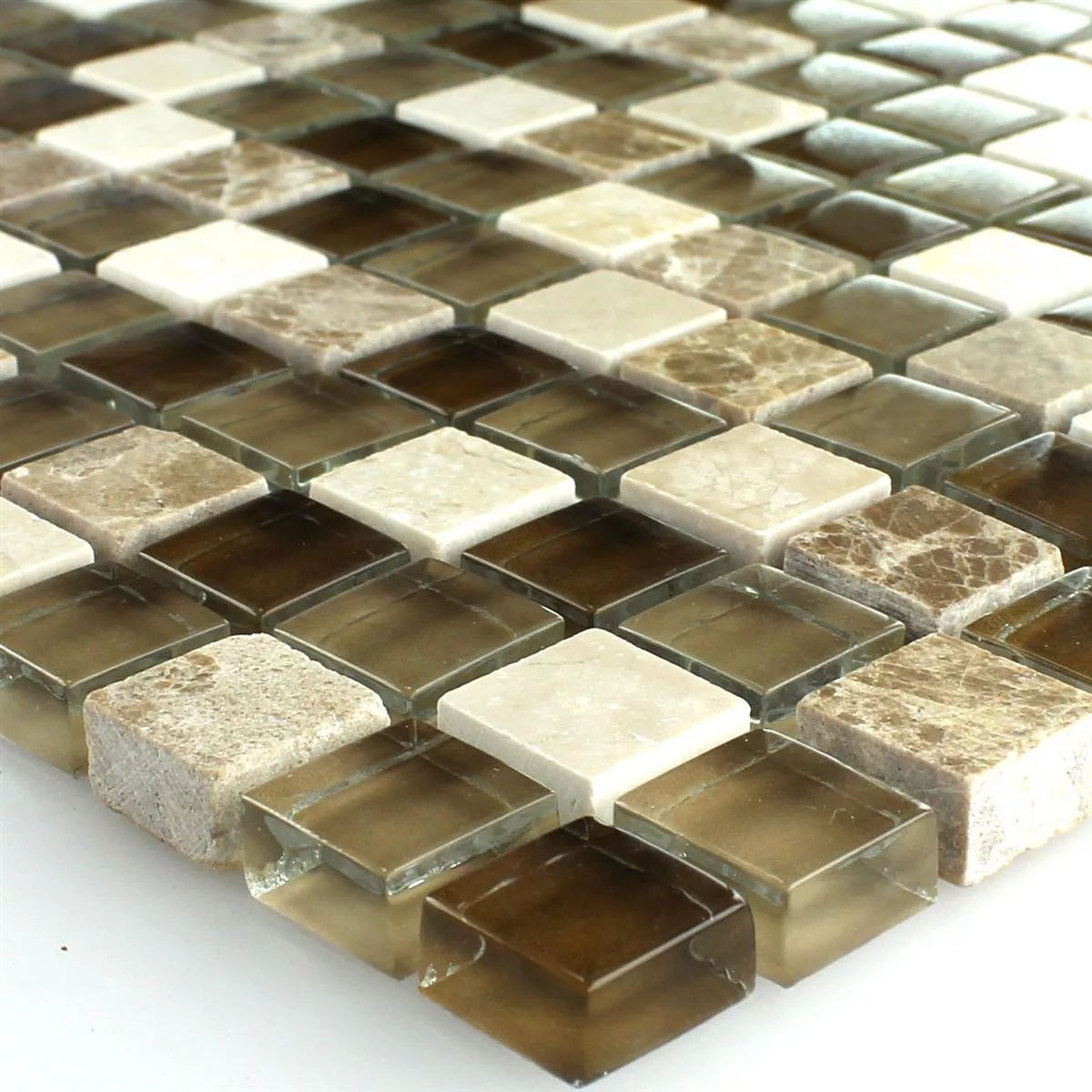 Mosaikfliesen Glas Marmor Braun Beige 15x15x8mm