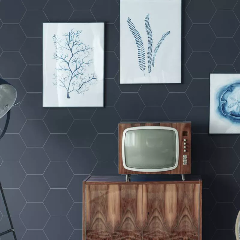 Bodenfliesen Loire Blau Sechseck Strukturiert 23x27 cm