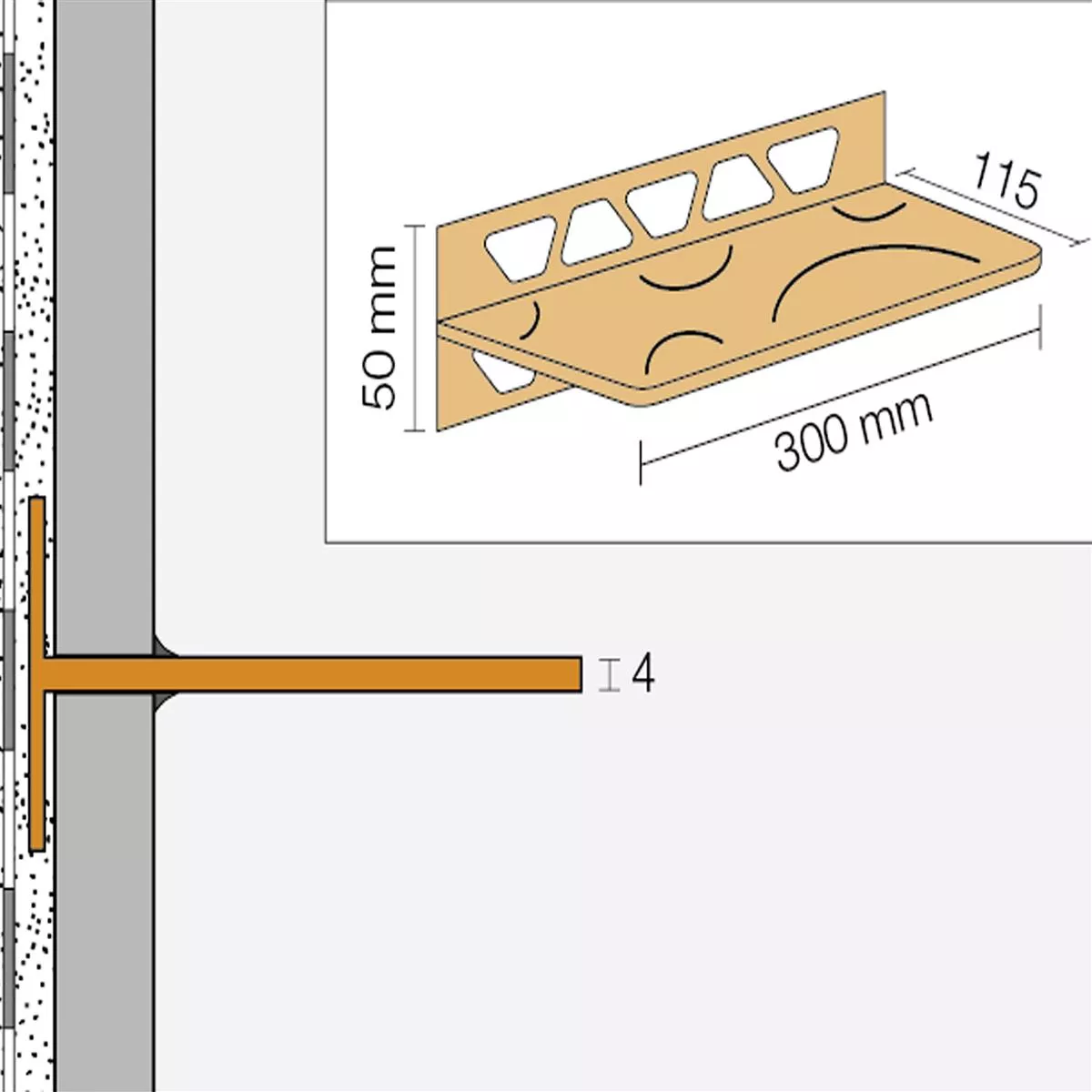 Rechteckige Wandablage Ob Badezimmer oder Küche: Die rechteckige Ablage Schlüter-SHELF-W können Sie überall im flächigen Wandbereich einsetzen, wo Sie gerade Ihre Fliesen verlegen. Dank trapezförmig gelochter Befestigungsschenkel sind die Ablagen äußerst stabil und belastbar, überzeugen aber gleichzeitig auch mit ihrer modernen Optik. Sie können sich nämlich nicht nur zwischen fünf ansprechenden Designs entscheiden, sondern auch zwischen Edelstahl gebürstet und Aluminium, wobei letzteres mit einer gefragten TRENDLINE-Farbe oder einer MyDesign-RAL-Farbe hochwertig pulverbeschichtet wird.