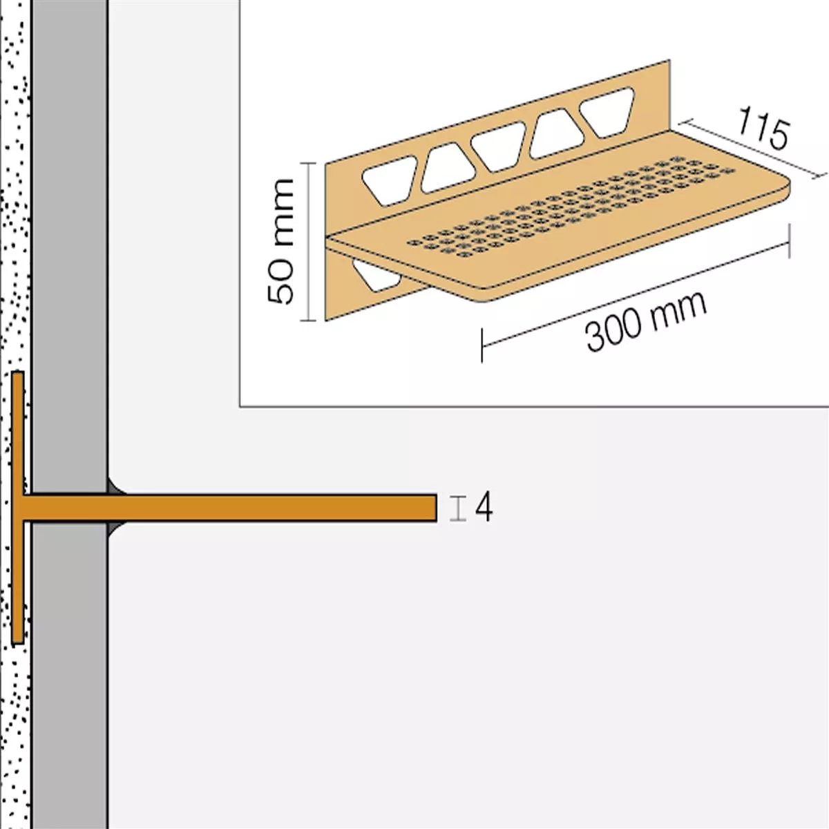 Rechteckige Wandablage Ob Badezimmer oder Küche: Die rechteckige Ablage Schlüter-SHELF-W können Sie überall im flächigen Wandbereich einsetzen, wo Sie gerade Ihre Fliesen verlegen. Dank trapezförmig gelochter Befestigungsschenkel sind die Ablagen äußerst stabil und belastbar, überzeugen aber gleichzeitig auch mit ihrer modernen Optik. Sie können sich nämlich nicht nur zwischen fünf ansprechenden Designs entscheiden, sondern auch zwischen Edelstahl gebürstet und Aluminium, wobei letzteres mit einer gefragten TRENDLINE-Farbe oder einer MyDesign-RAL-Farbe hochwertig pulverbeschichtet wird.