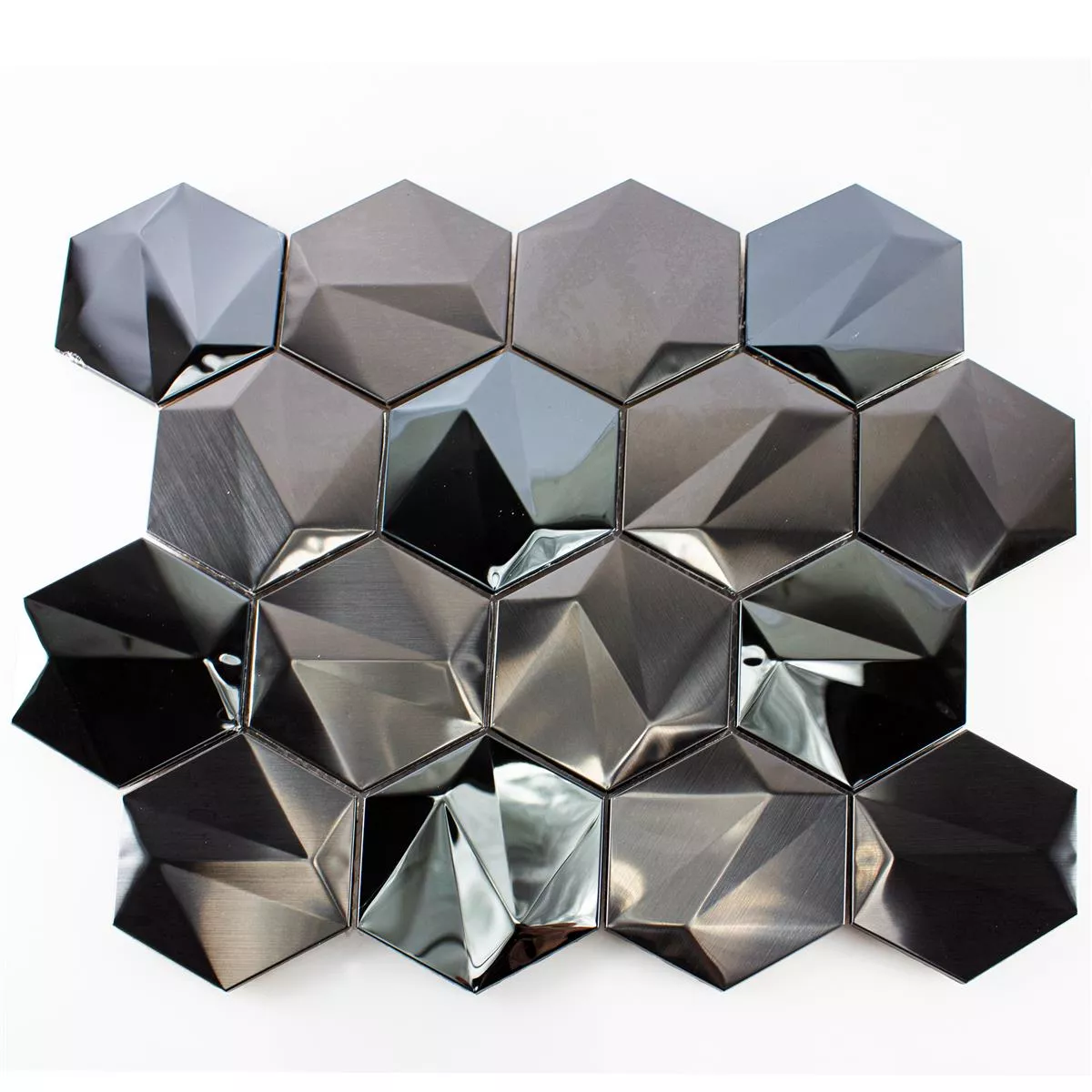Edelstahl Mosaikfliesen Durango Hexagon 3D Braun