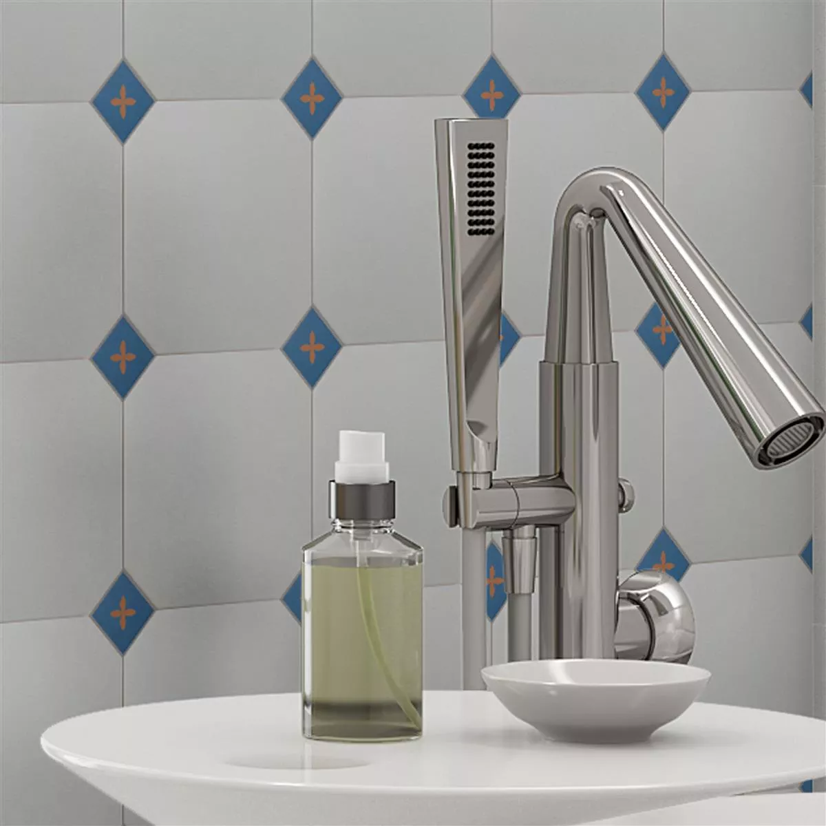 In Kombination mit Octagon Fliesen in verschiedenen Farben und Mustern bietet die Serie unendliche Kombinationsmöglichkeiten je nach Geschmack und Vorlieben.
