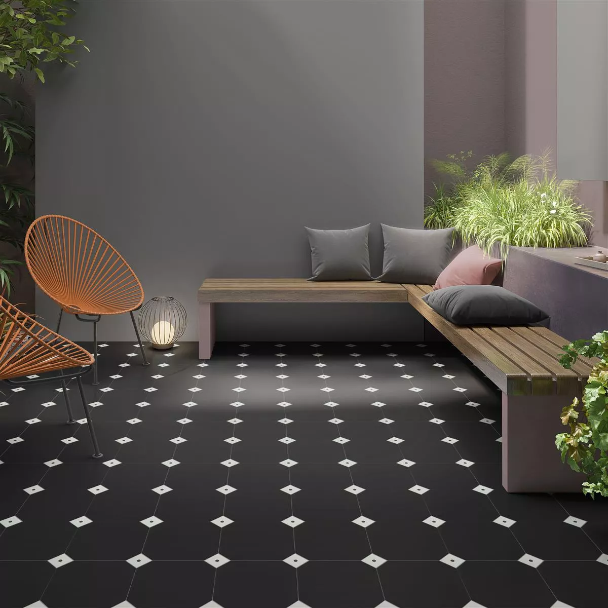 Die Feinsteinzeug Fliesen Genexia Uni Schwarz Octagon 20x20cm verleihen Ihrem Zuhause klassische Eleganz in Schwarz. Ihr zeitloses Design mit dem charakteristischen Octagon-Format ist perfekt für Böden und Wände in verschiedenen Räumen.