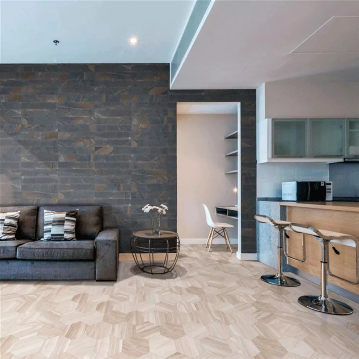 Entdecken Sie die einzigartige Kombination aus natürlicher Holzoptik und moderner Eleganz mit den Feinsteinzeug Fliesen Hexwood Hexagon Beige. Diese glasierten Fliesen in hexagonaler Form sind nicht nur ein Blickfang, sondern bieten auch vielseitige Einsatzmöglichkeiten und höchste Qualität.