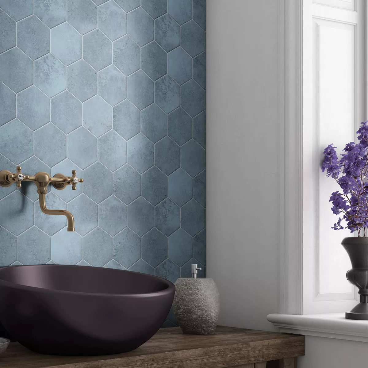Entdecken Sie unsere vielseitigen Feinsteinzeug-Fliesen Palencia in elegantem Blau mit Hexagon-Form - die perfekte Wahl für Ihr Schwimmbad, Ihren Pool und viele weitere Bereiche. Diese hochwertigen Fliesen bieten eine Kombination aus Ästhetik und Funktionalität: