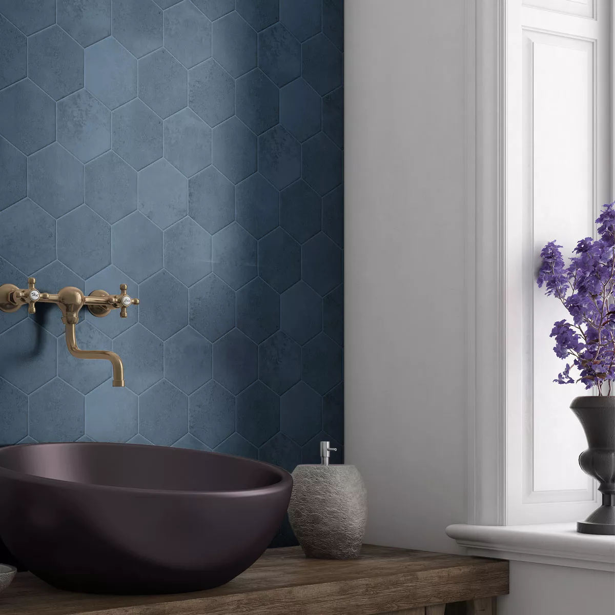 Diese exquisiten Feinsteinzeug-Fliesen in Dunkelblau verleihen Ihrem Schwimmbad, Pool oder anderen Nassbereichen eine elegante und moderne Optik. Die hexagonale Form mit den Maßen 22,5 x 25,9 cm sorgt für ein einzigartiges Design.