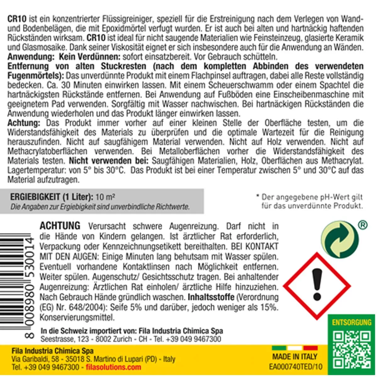 Fila CR10 Reiniger für Epoxidfugenmörtel 1 Liter