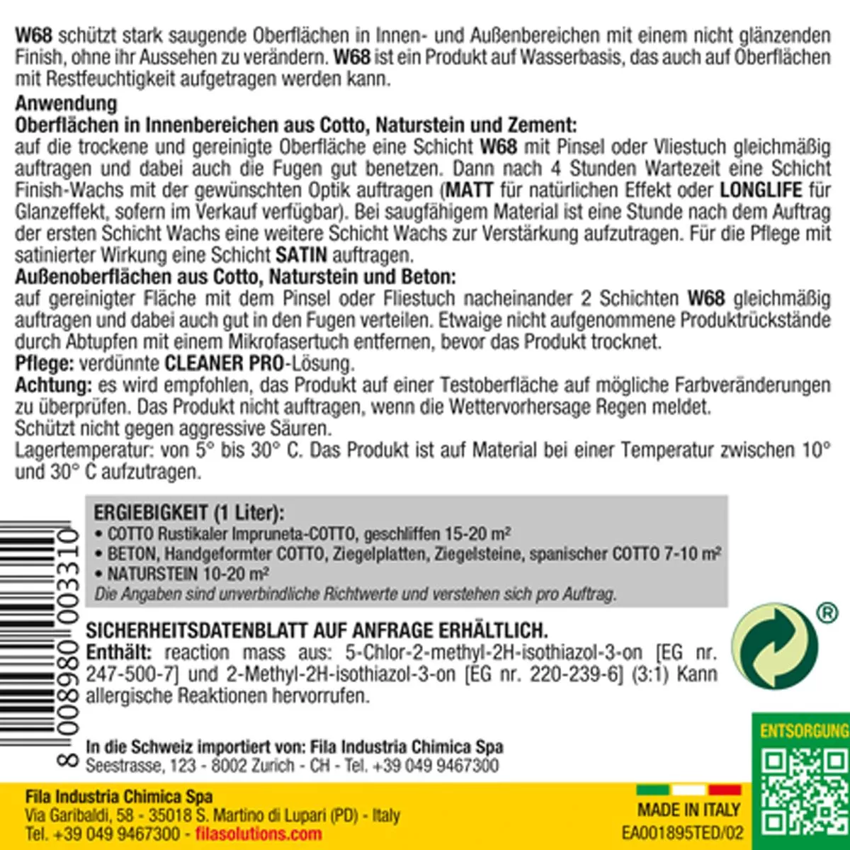 Fila W68 Fleckschutzmittel für unpolierte Oberflächen 5 L