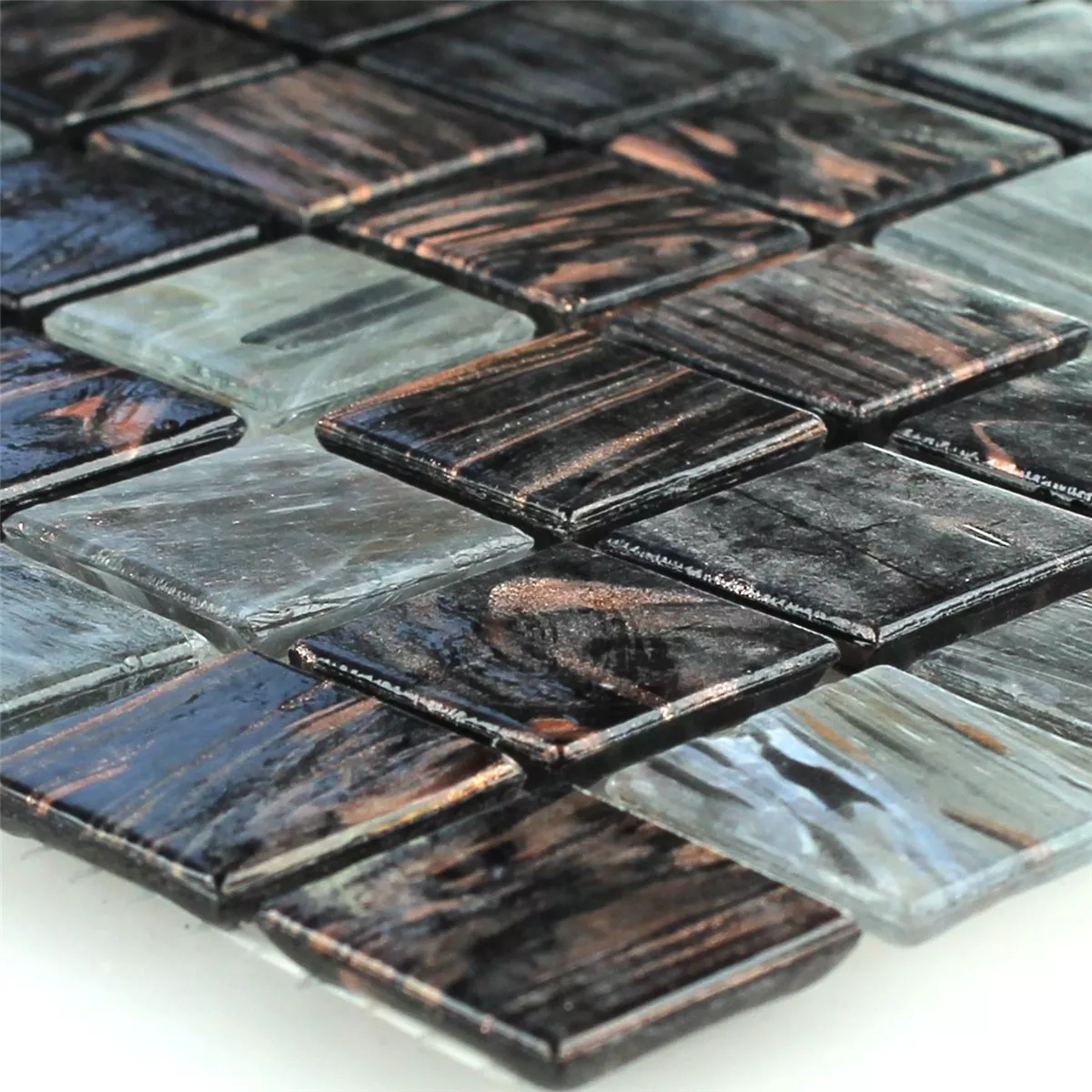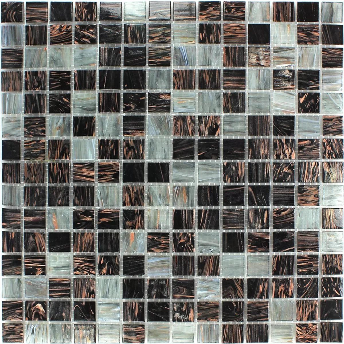 In den Farben Schwarz, Dunkelgrau und Braun gehalten, verleiht die matte Oberfläche der Fliese jedem Raum eine moderne und stilvolle Note. Die Glas-Mosaikfliesen haben eine Steingröße von 20 x 20 mm und eine Stärke von 4 mm. Mit einer Fliesenmatte von 30,5 x 32,7 cm, die eine Fläche von 0,10 m² abdeckt, lassen sich großflächige Verkleidungen effizient gestalten.