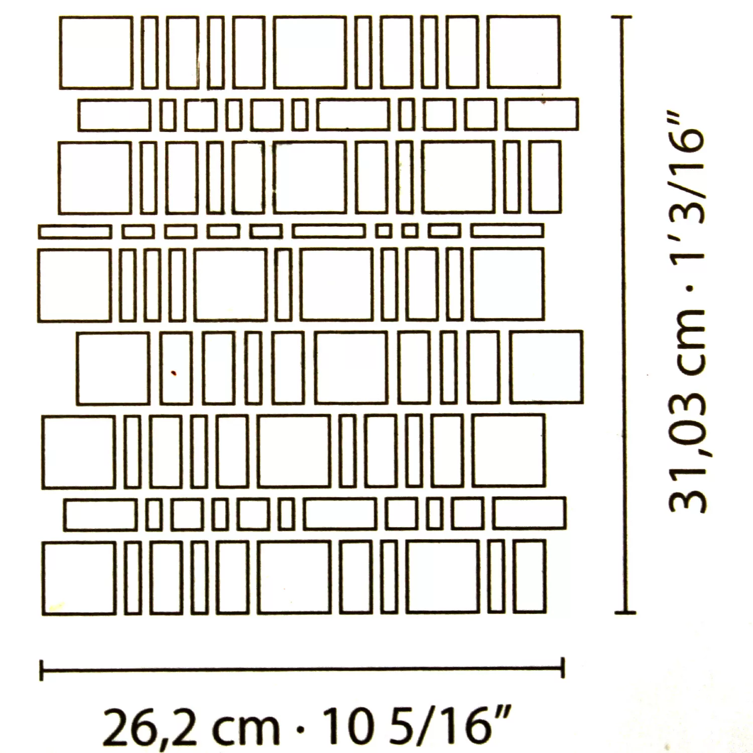 Mosaikmuster werden in einer Größe von ca. 10x10cm geliefert, Fliesenmuster werden aus der angegebenen Fliese in einer Größe von max. 30x60cm geschnitten und können nicht geändert oder zurückgegeben werden