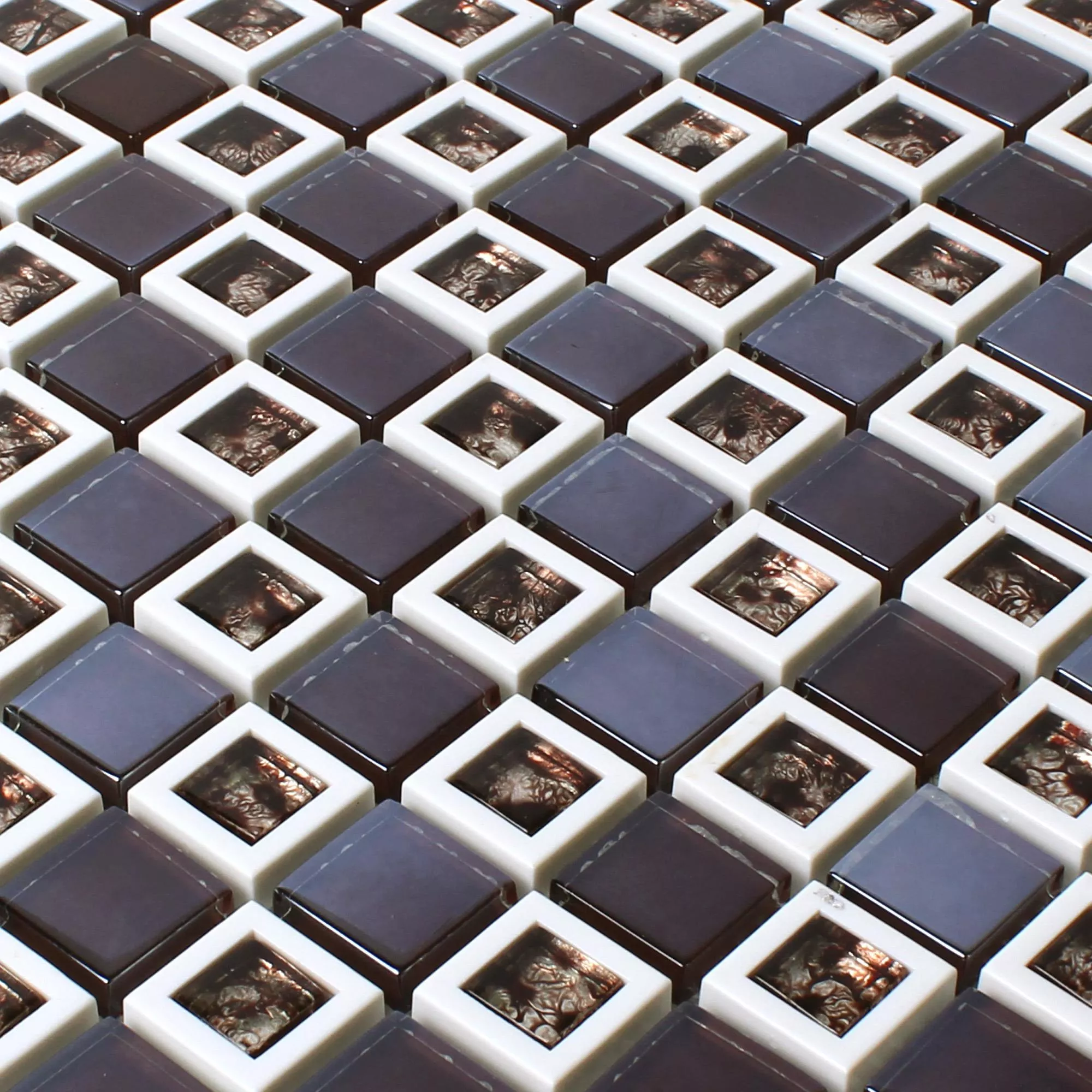Bei den Glas Kunststoff Mosaikfliesen "Anatolia" in Braun handelt es sich um Wandfliesen. Von den Fliesen sind vier verschiedene Pakete erhältlich, die sich farblich voneinander unterscheiden. Dabei handelt es sich um zwei helle und zwei dunkle Varianten.