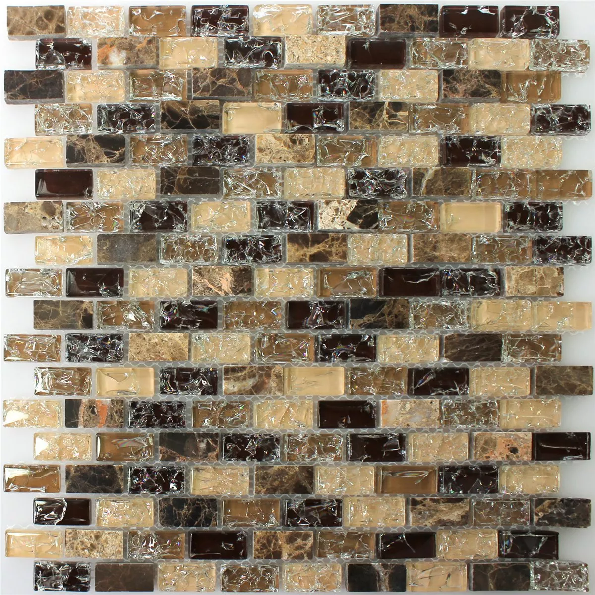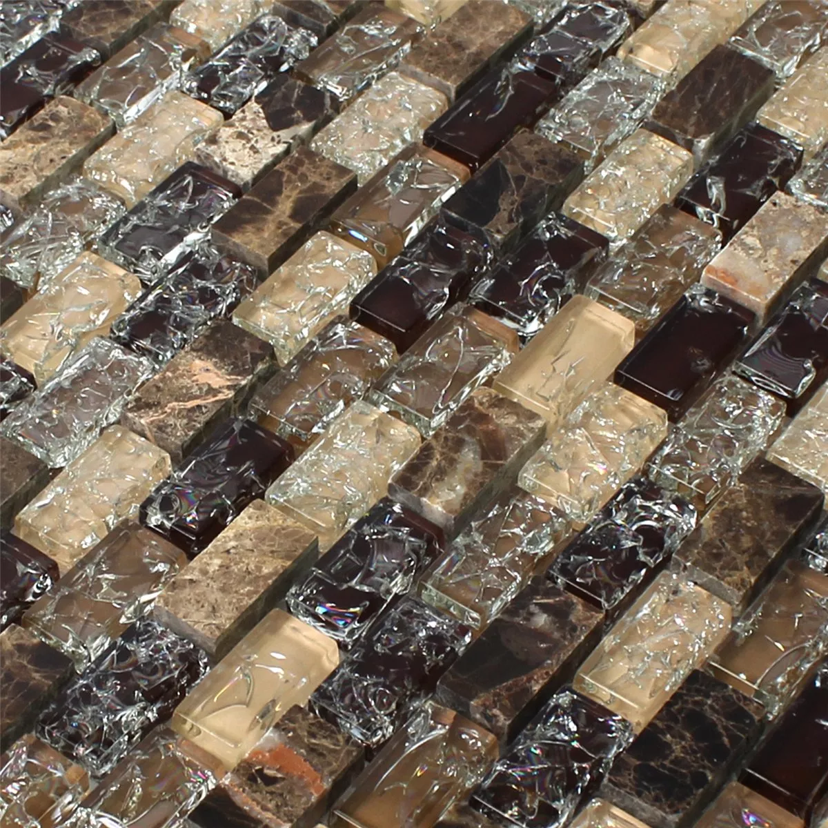 Glas Marmor Mosaikfliesen Dark Emperador Malawi Bruchglas Brick
