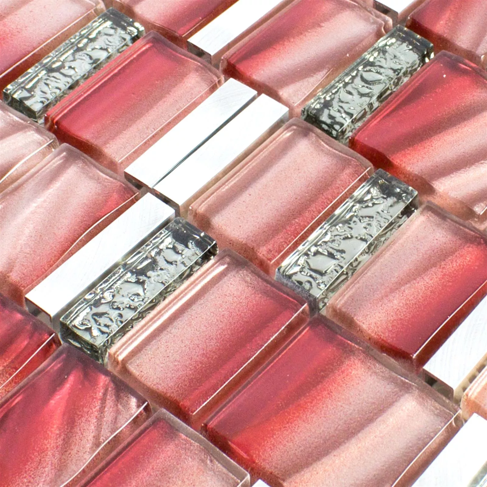 Die Glas-Metall-Mosaikfliesen Union in Rot und Silber verleihen Ihren Wänden einen auffälligen und eleganten Look. Diese Mosaikfliesen bestehen aus einer hochwertigen Kombination von Aluminium und Glas, die ein luxuriöses Finish und eine moderne Ausstrahlung bieten.