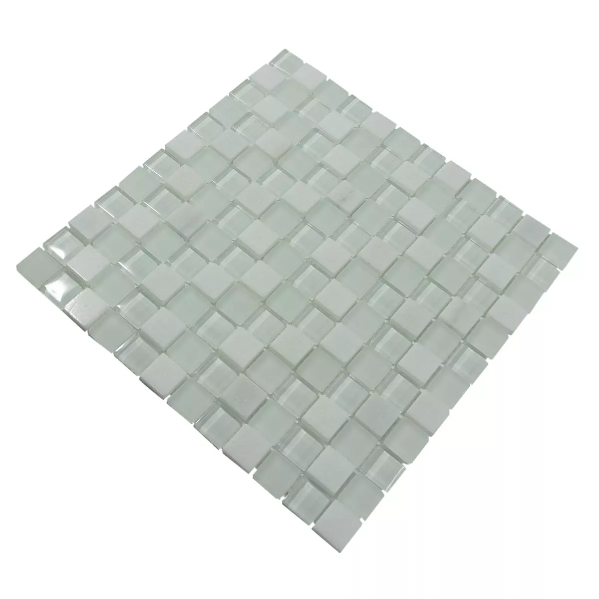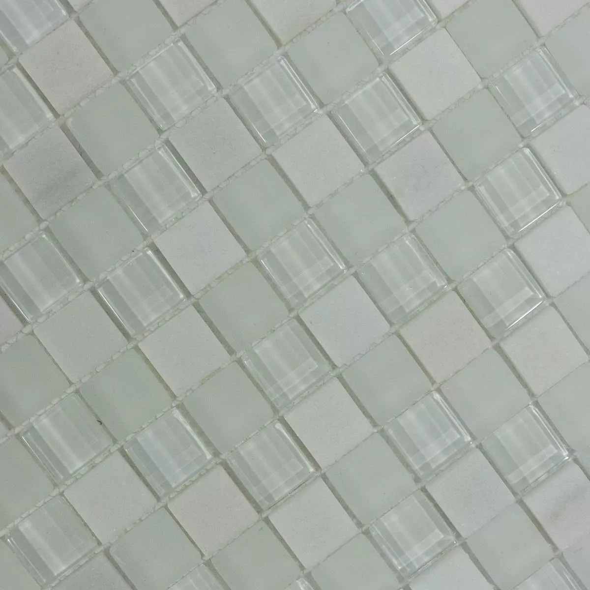 Glas Naturstein Mosaikfliese Sagura Weiß