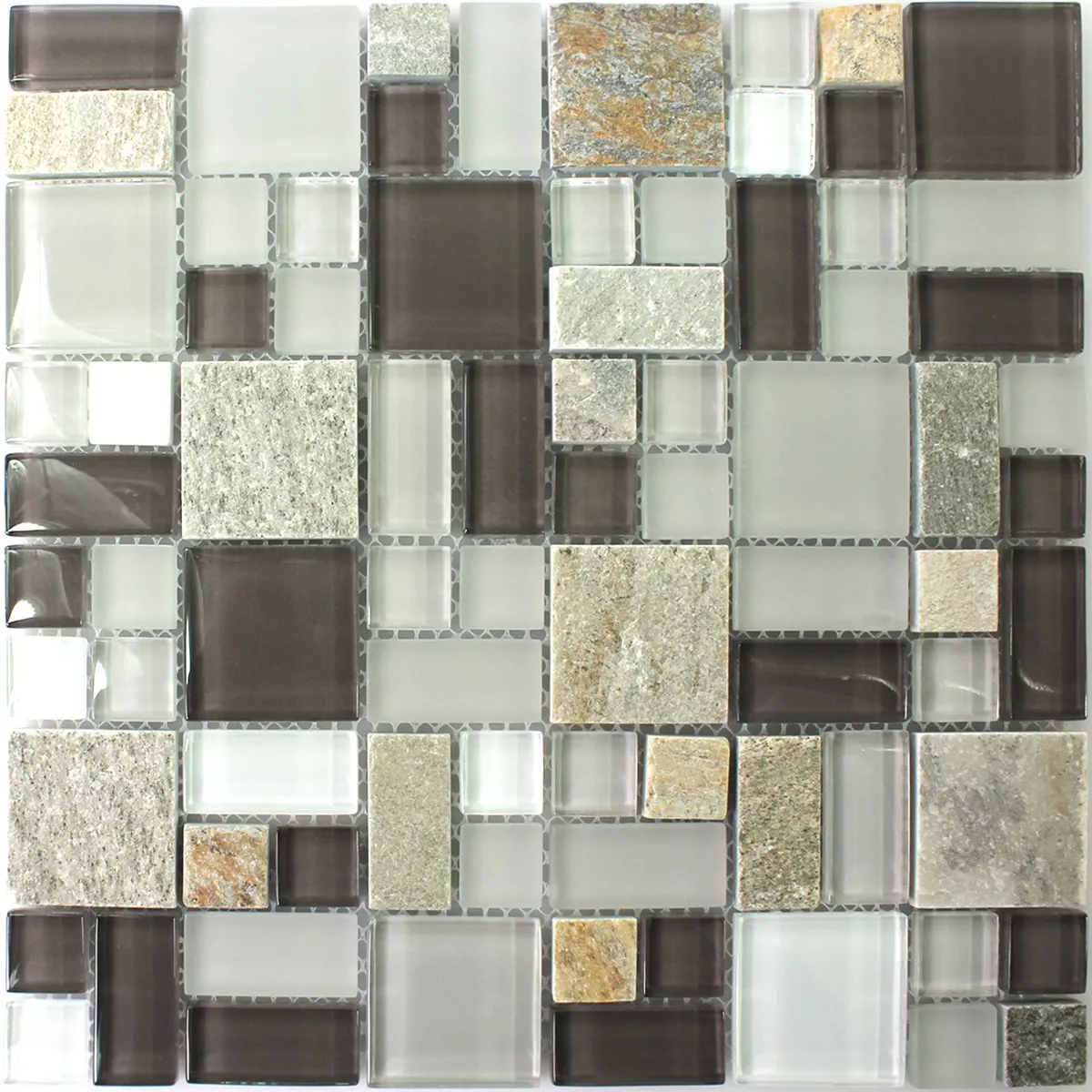 Glas Naturstein Mosaikfliesen Vermont Grau Braun