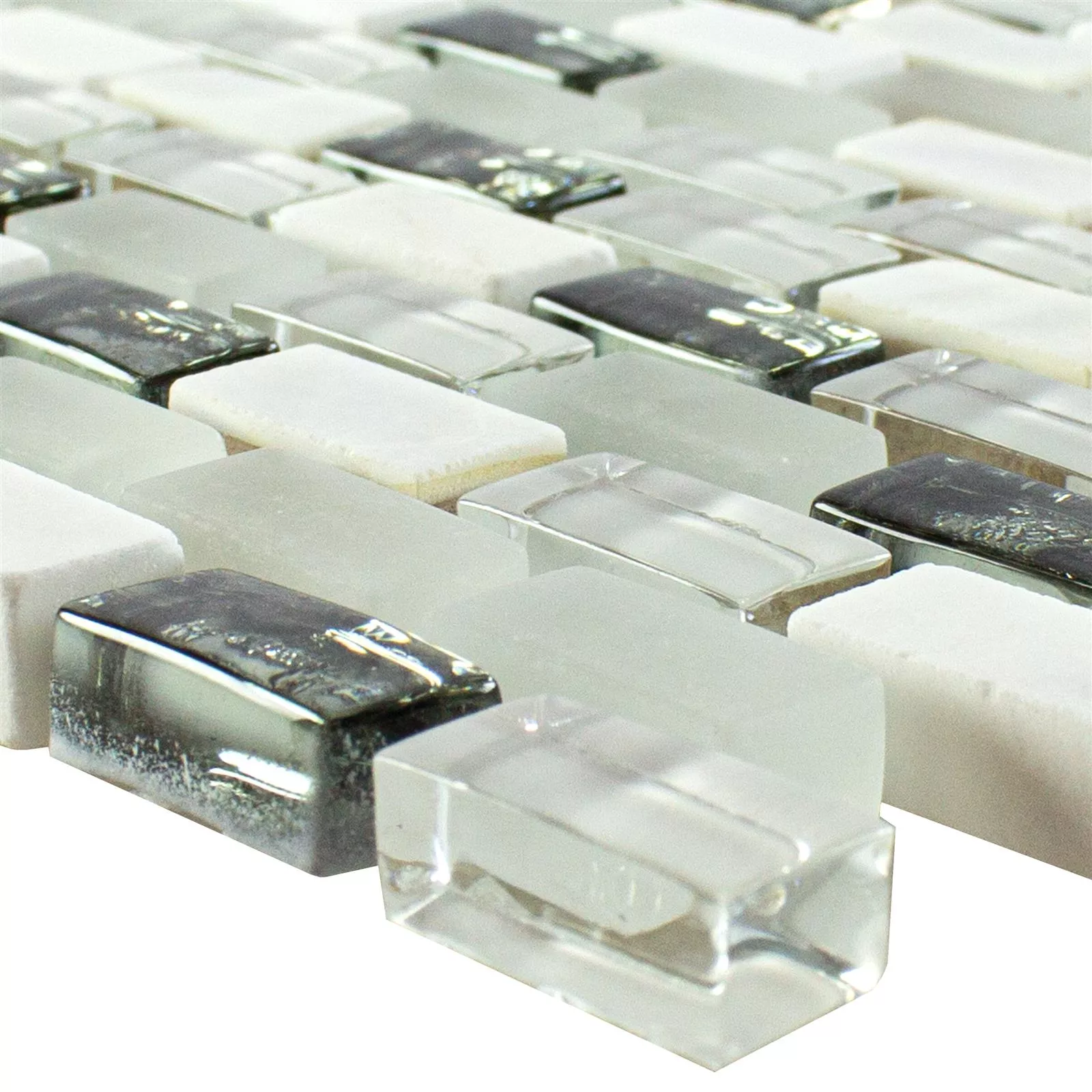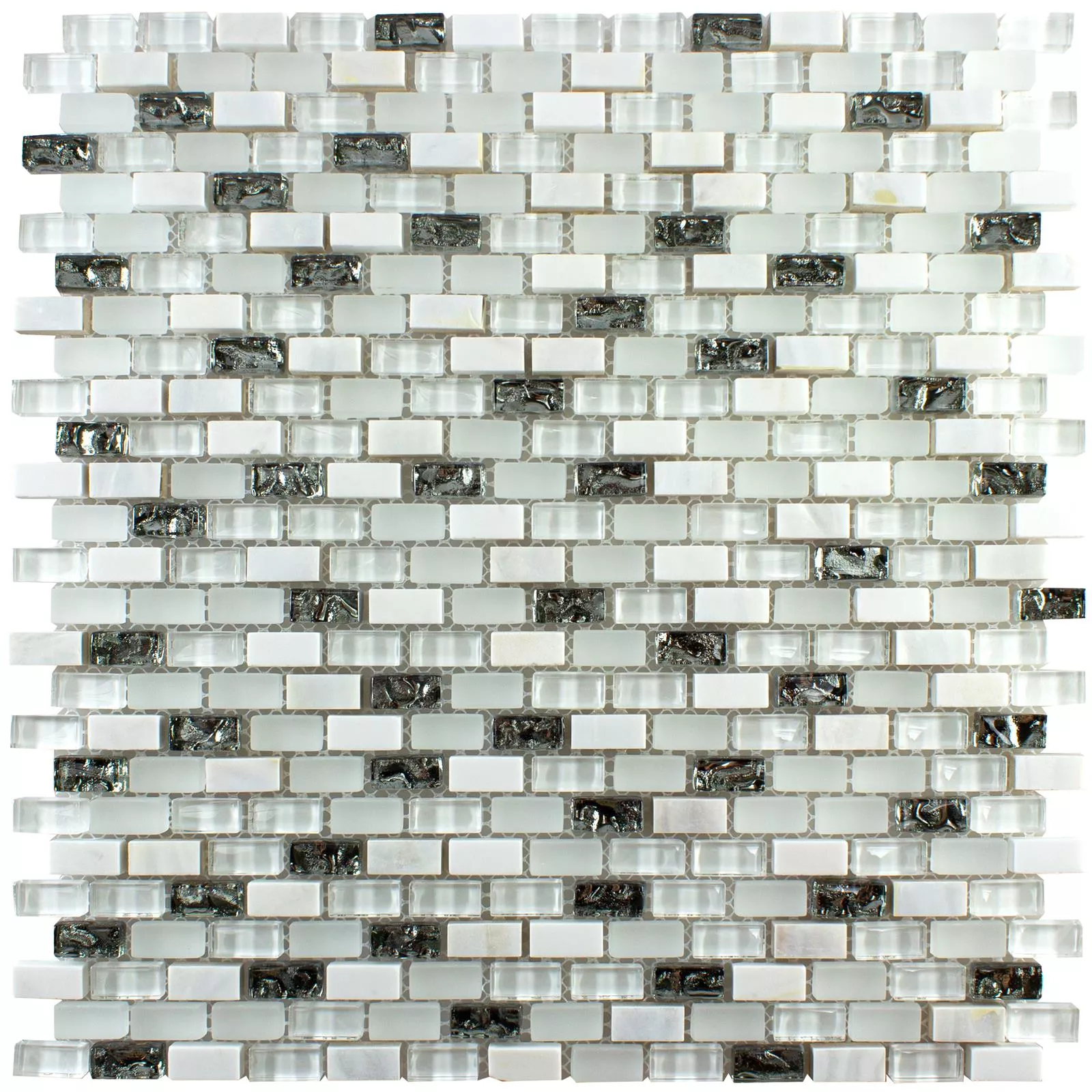 Glas Naturstein Perlmutt Mosaik Admiral Weiß Silber