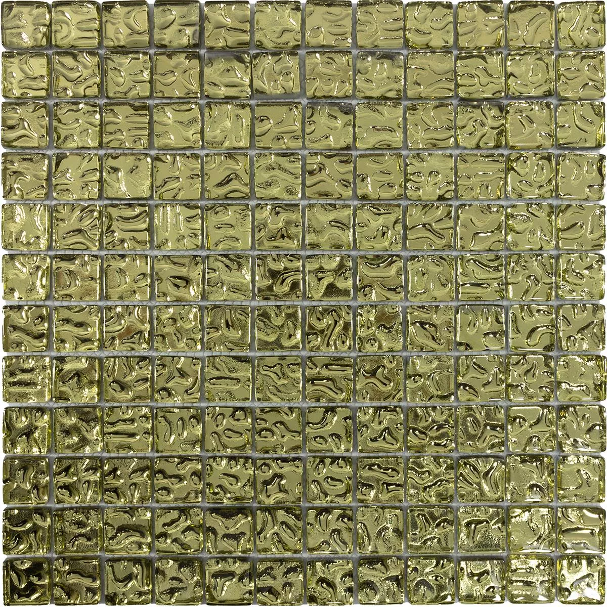 Tauchen Sie ein in pure Eleganz mit unseren Glasmosaik Fliesen Aquatic Gold. Diese quadratischen Mosaik-, Wand- und Bodenfliesen mit einer Steingröße von 23x23mm verleihen Ihrem Innenbereich eine strahlende Goldnote. Die glänzende Oberfläche und eine Fugenbreite von 2mm betonen den luxuriösen Look. Mit einer Stärke von 8mm bieten sie nicht nur Ästhetik, sondern auch Robustheit.