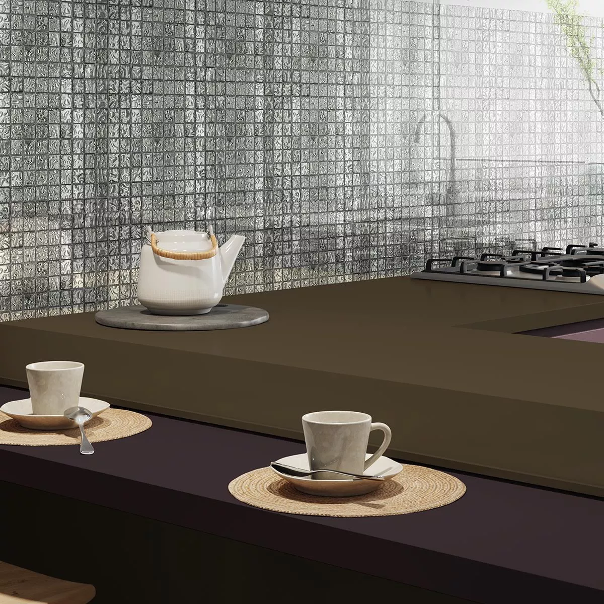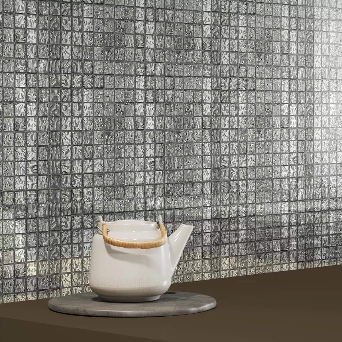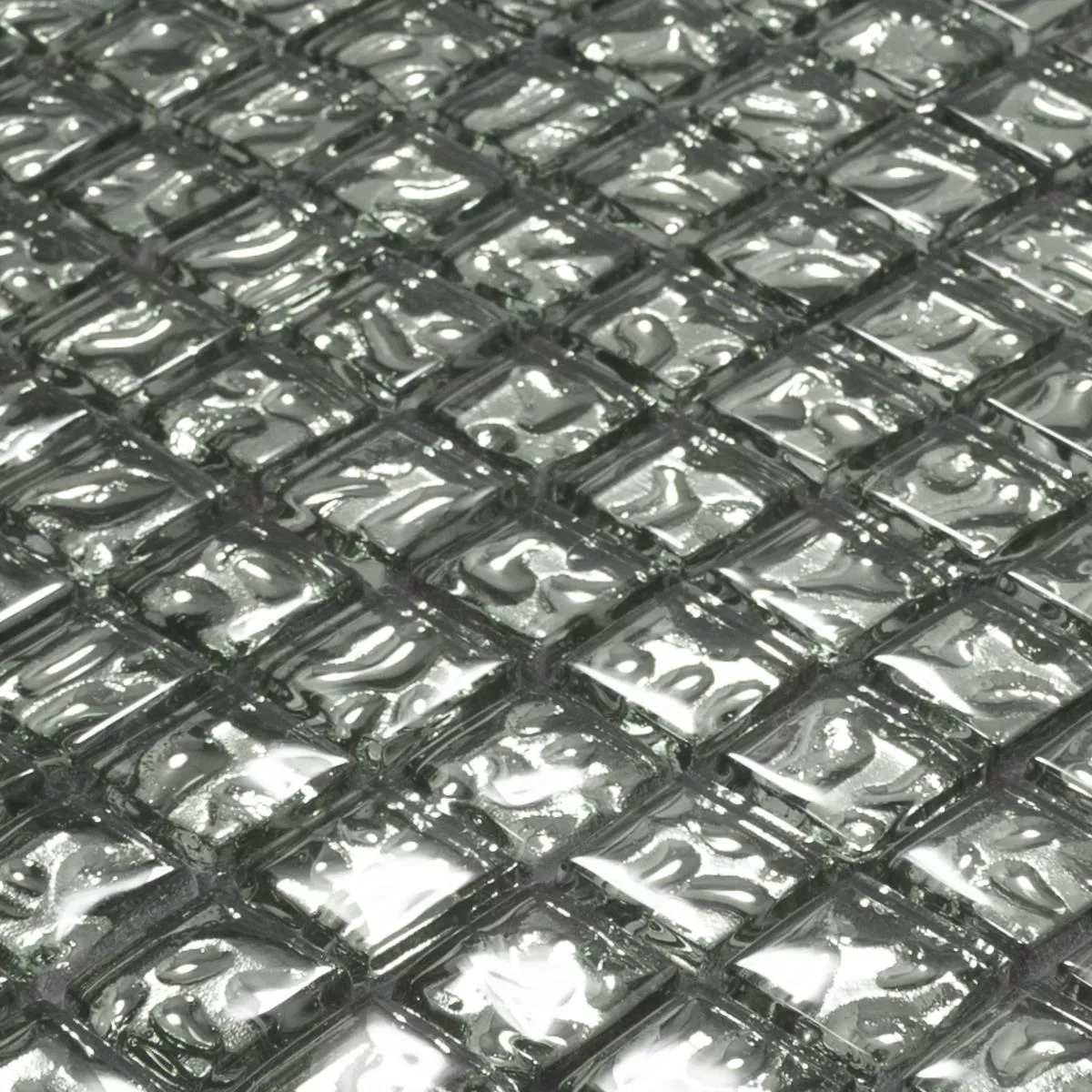 Tauchen Sie ein in die schimmernde Eleganz mit unseren Glasmosaik Fliesen Aquatic Silber. Diese quadratischen Mosaik-, Wand- und Bodenfliesen mit einer Steingröße von 23x23mm verleihen Ihrem Innenbereich eine zeitlose Brillanz. Die glänzende Oberfläche und eine Fugenbreite von 2mm betonen die edle Optik.