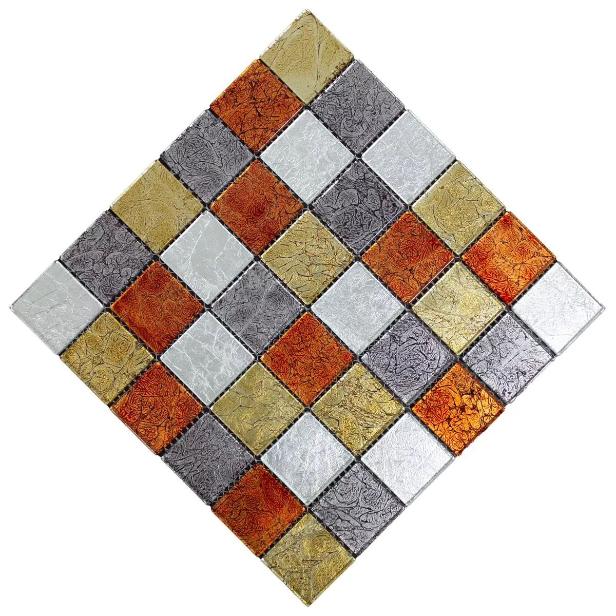 Erleben Sie die kühne Eleganz der Glasmosaik Fliesen Curlew Rot Braun Silber. Diese quadratischen Wandfliesen mit einer Steingröße von 48x48mm verleihen Ihrem Innenbereich eine faszinierende Textiloptik in Rot Braun Silber. Die glänzende Oberfläche und eine Stärke von 4mm bieten eine einzigartige visuelle und taktile Erfahrung.
