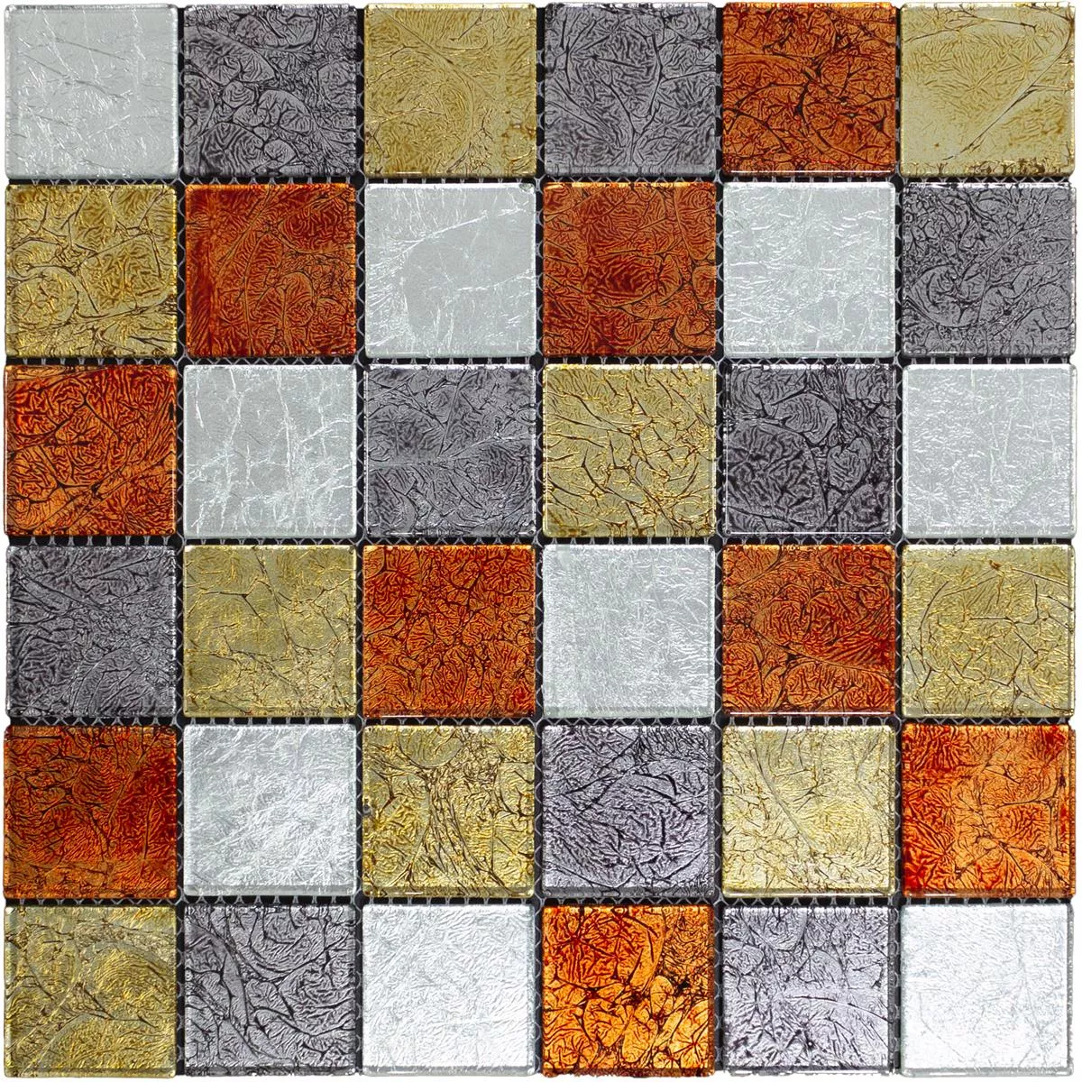Glasmosaik Fliesen Curlew Rot Braun Silber Q48 4mm