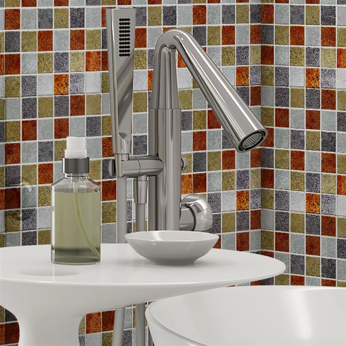 Jede Fliese und jedes Mosaik haben aufgrund individueller Materialeigenschaften und Anwendungsbedingungen unterschiedliche Anforderungen an das Zuschneiden, Verlegen und Verarbeiten. Fragen Sie einen örtlichen Experten für das korrekte und sichere Verlegen Ihrer Mosaike oder Fliesen. Wir haften nicht für unsachgemäßen Gebrauch und fehlerhafte Verarbeitung von Baumaterialien.