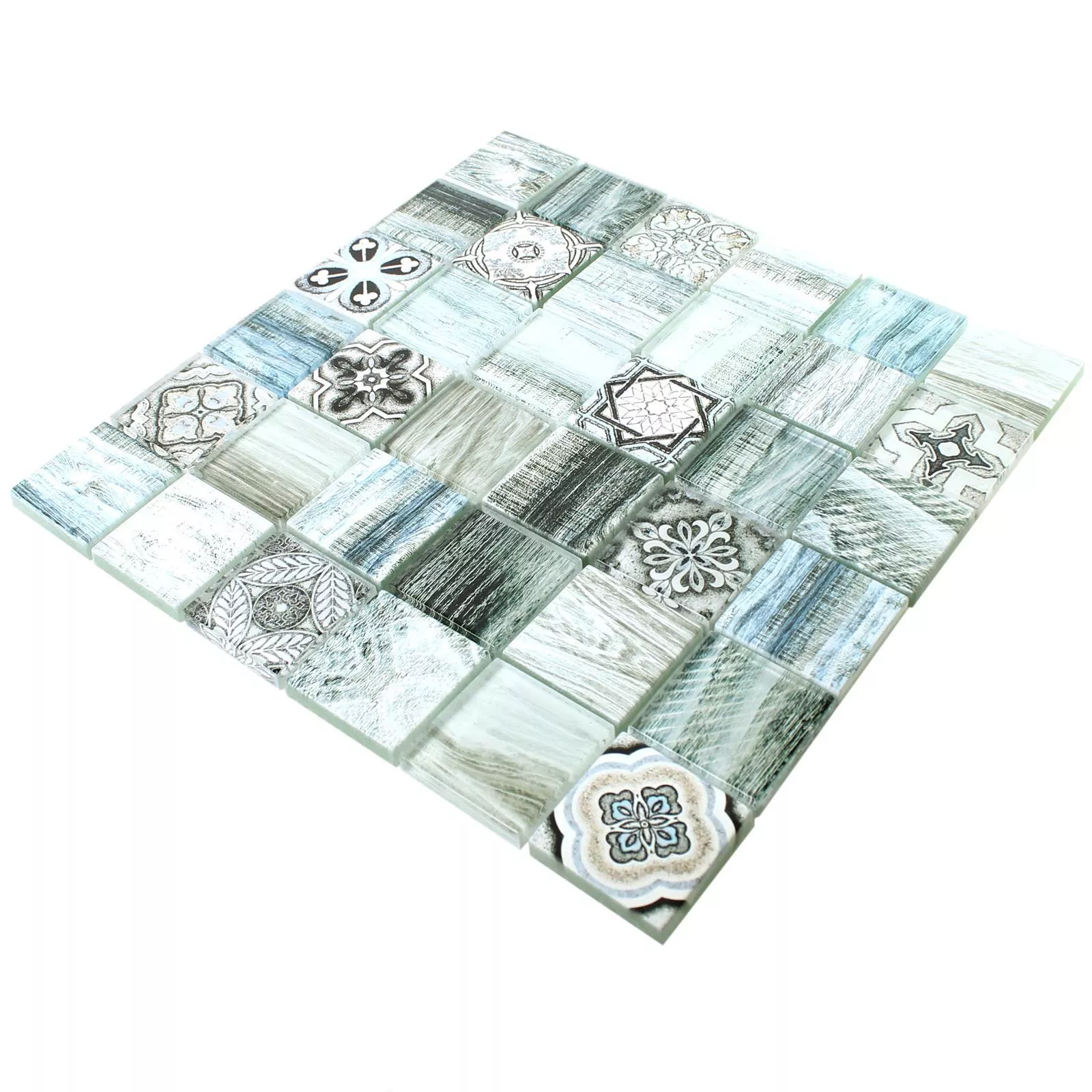 Very nice mosaic, some tesserae are opaque with design on the surface, others in glossy glass with the same design but printed on the bottom. Very nice effect. Punctual delivery and undamaged product.
