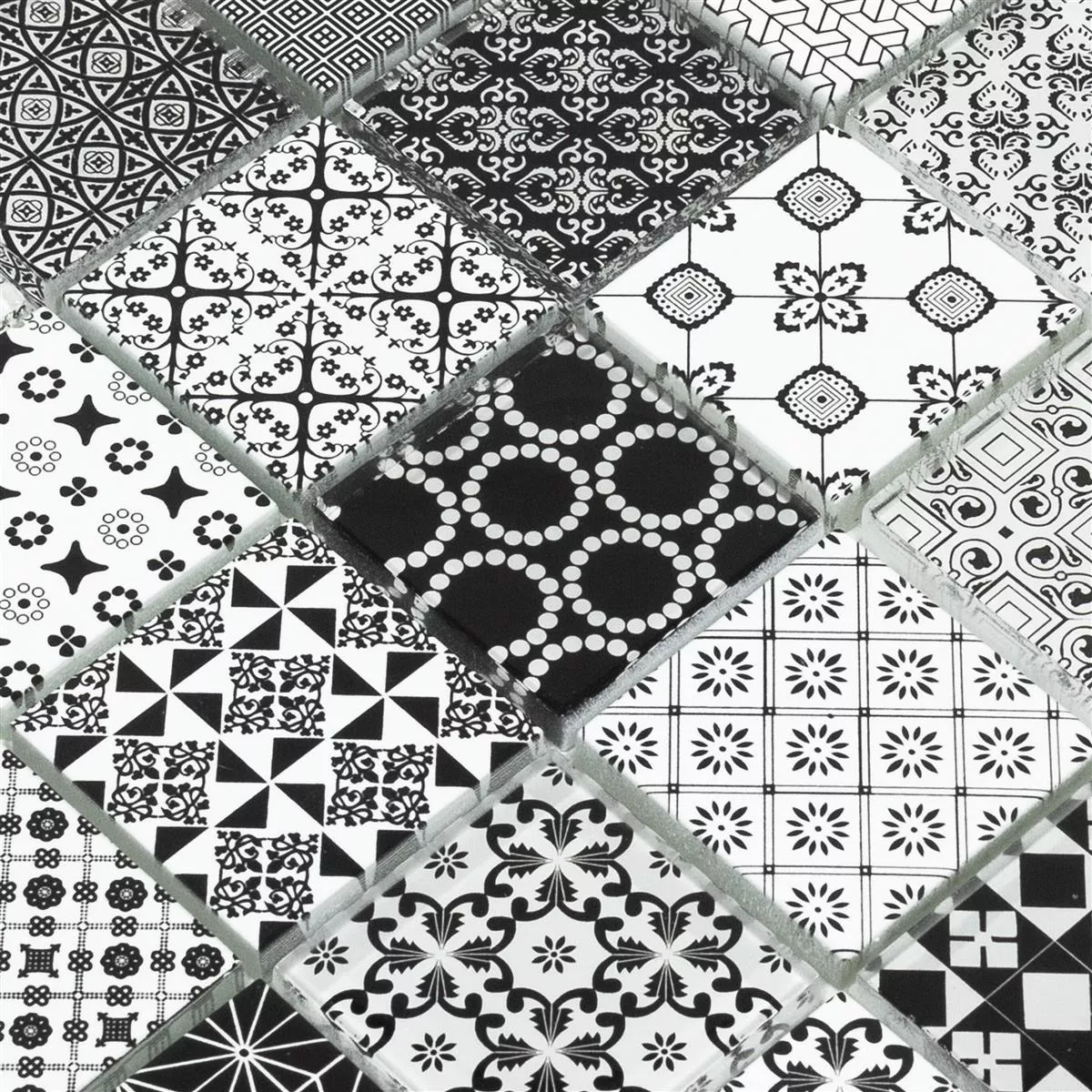 Glasmosaik Fliesen Ornamento Schwarz Weiß