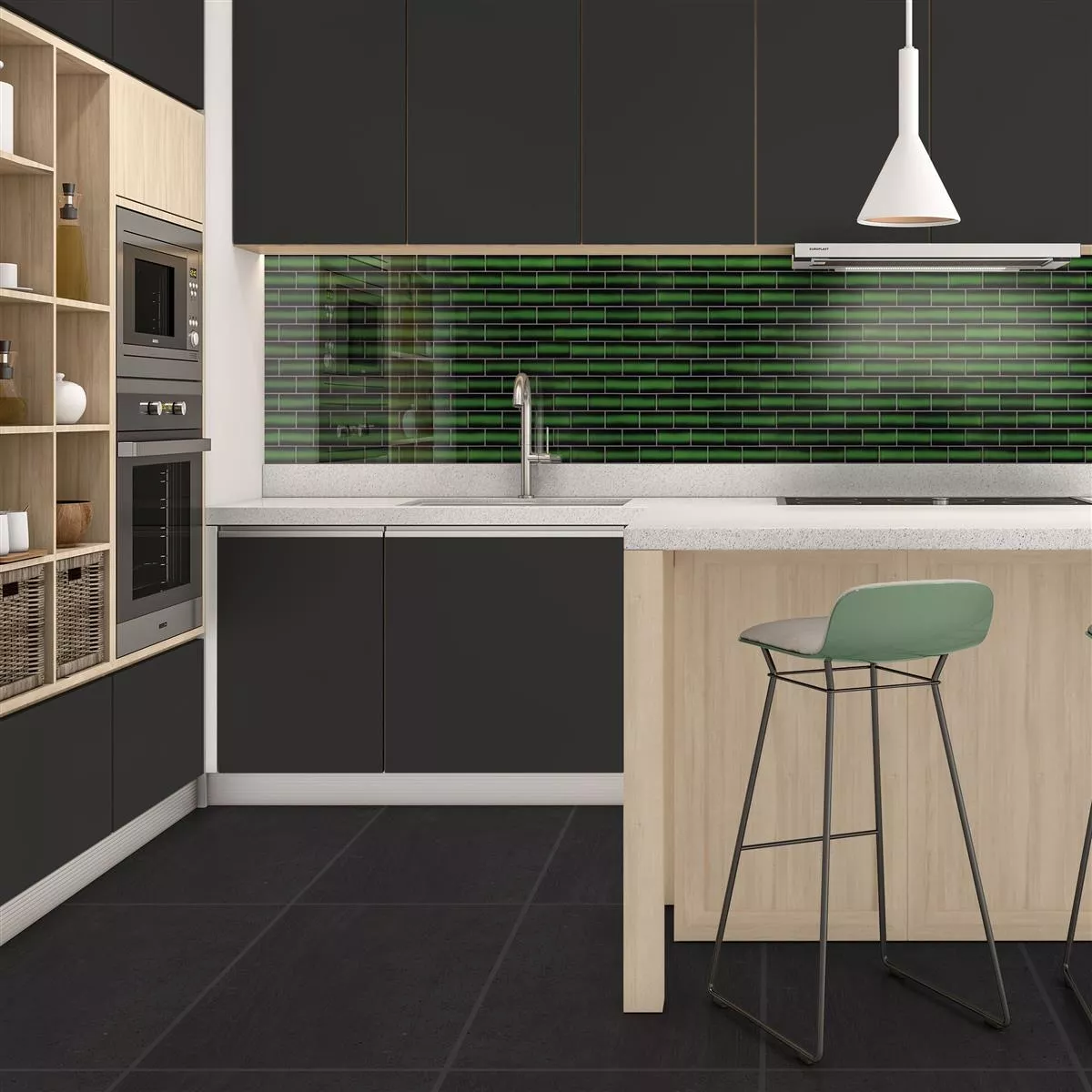 Die Fliesen bestehen aus hochwertigem Glas, das robust und langlebig ist. Die Farbe der Fliesen ist sorgfältig ausgewählt, um ein harmonisches und beruhigendes Ambiente in jedem Raum zu schaffen. Das Smaragdgrün und Grün der Fliesen fügt sich gut in viele Einrichtungsstile ein und kann sowohl als Akzent als auch als Hauptfarbe verwendet werden.