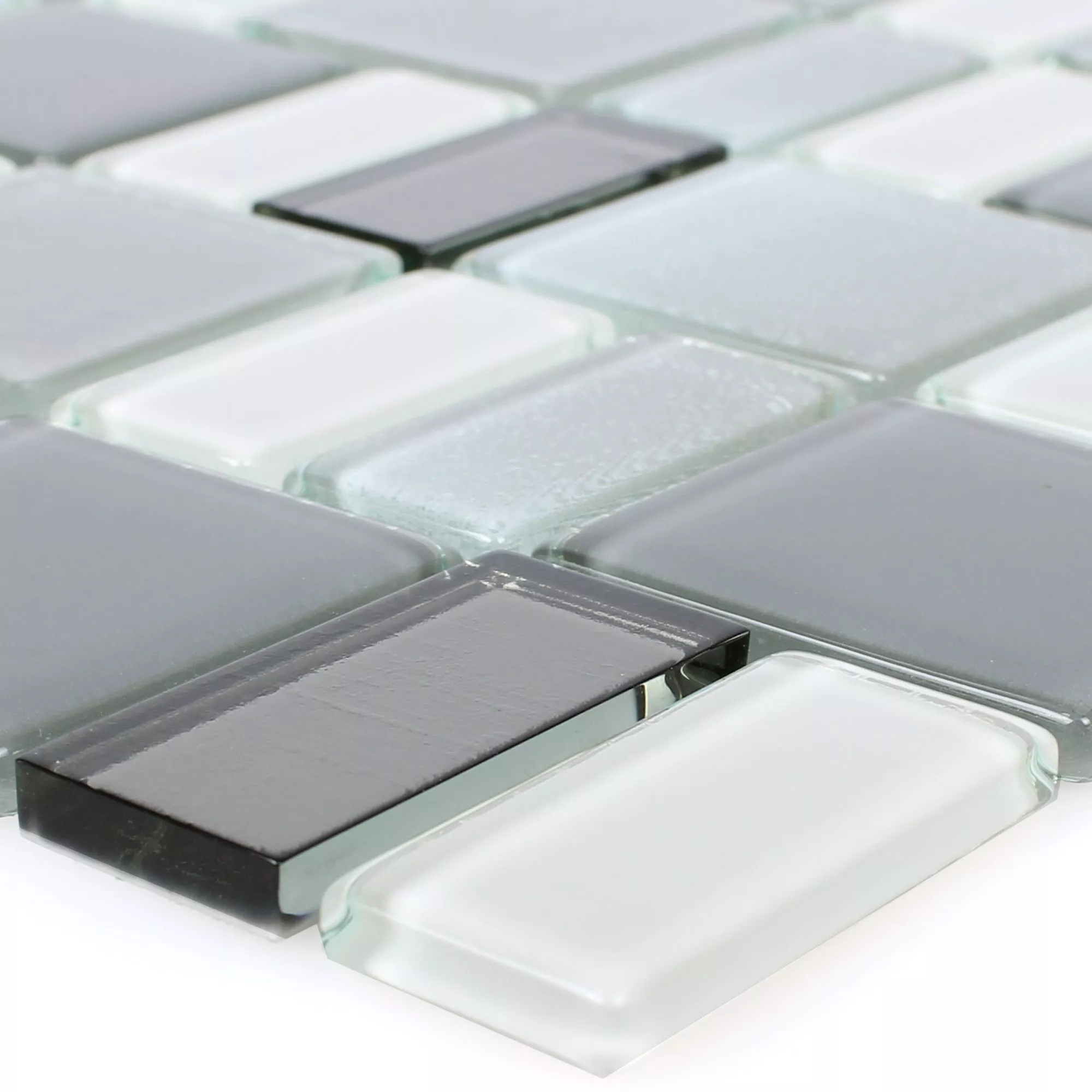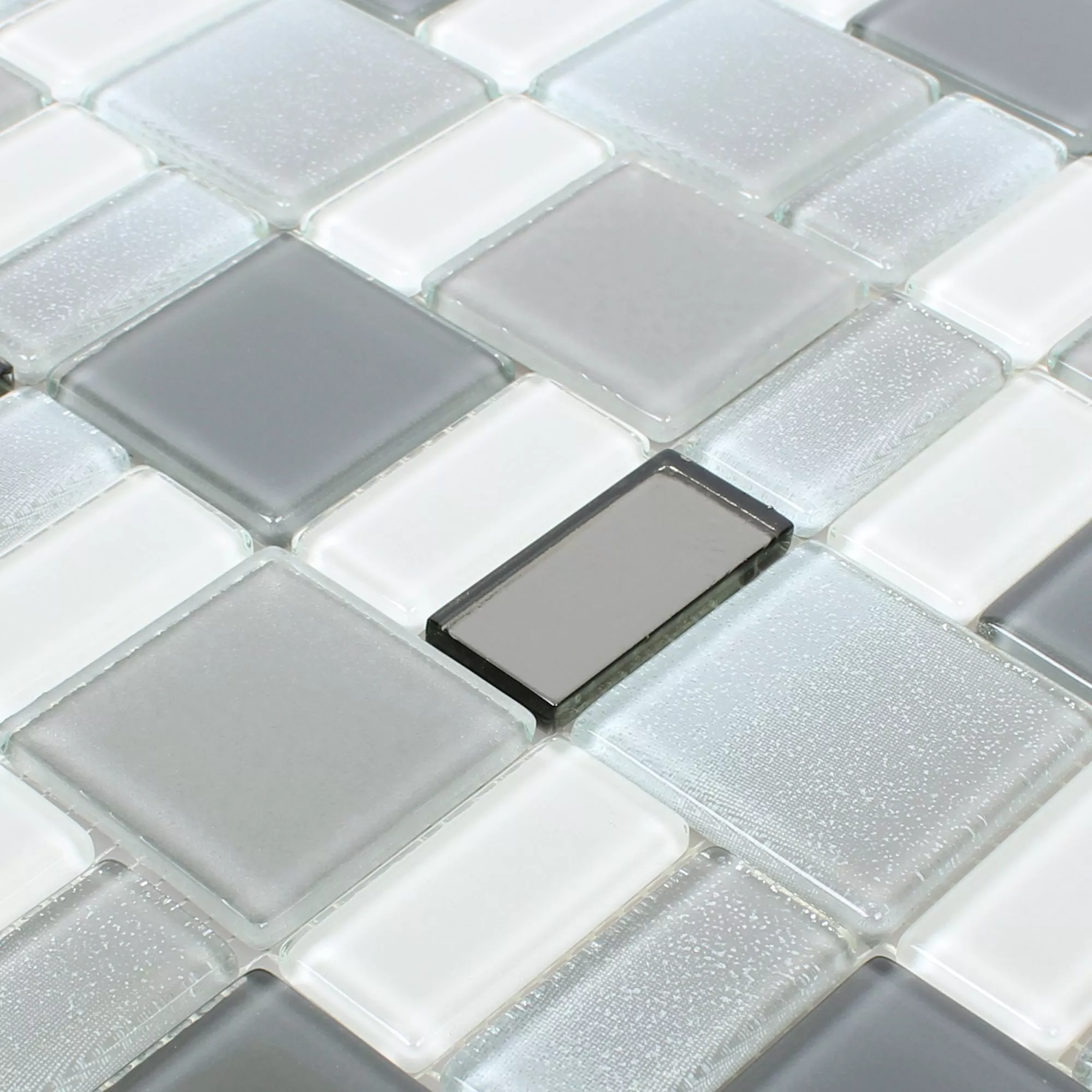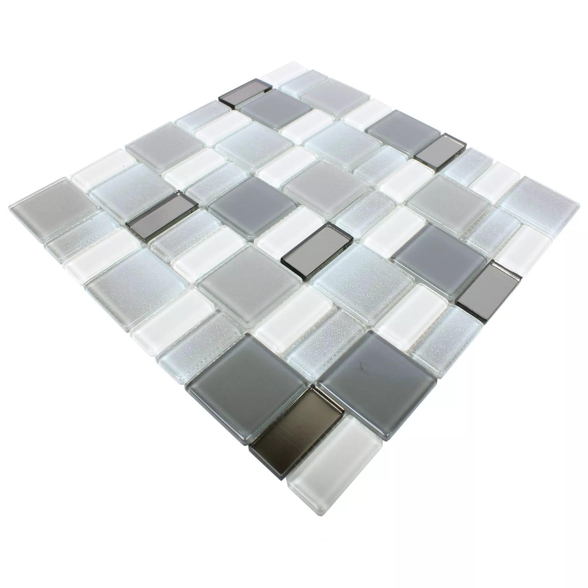 Die Glasmosaik Fliesen Peacock Silber Schillernd machen jedes Einsatzgebiet zu einem ansehnlicheren Ort und verleihen ihm einen edlen und gepflegten Eindruck.