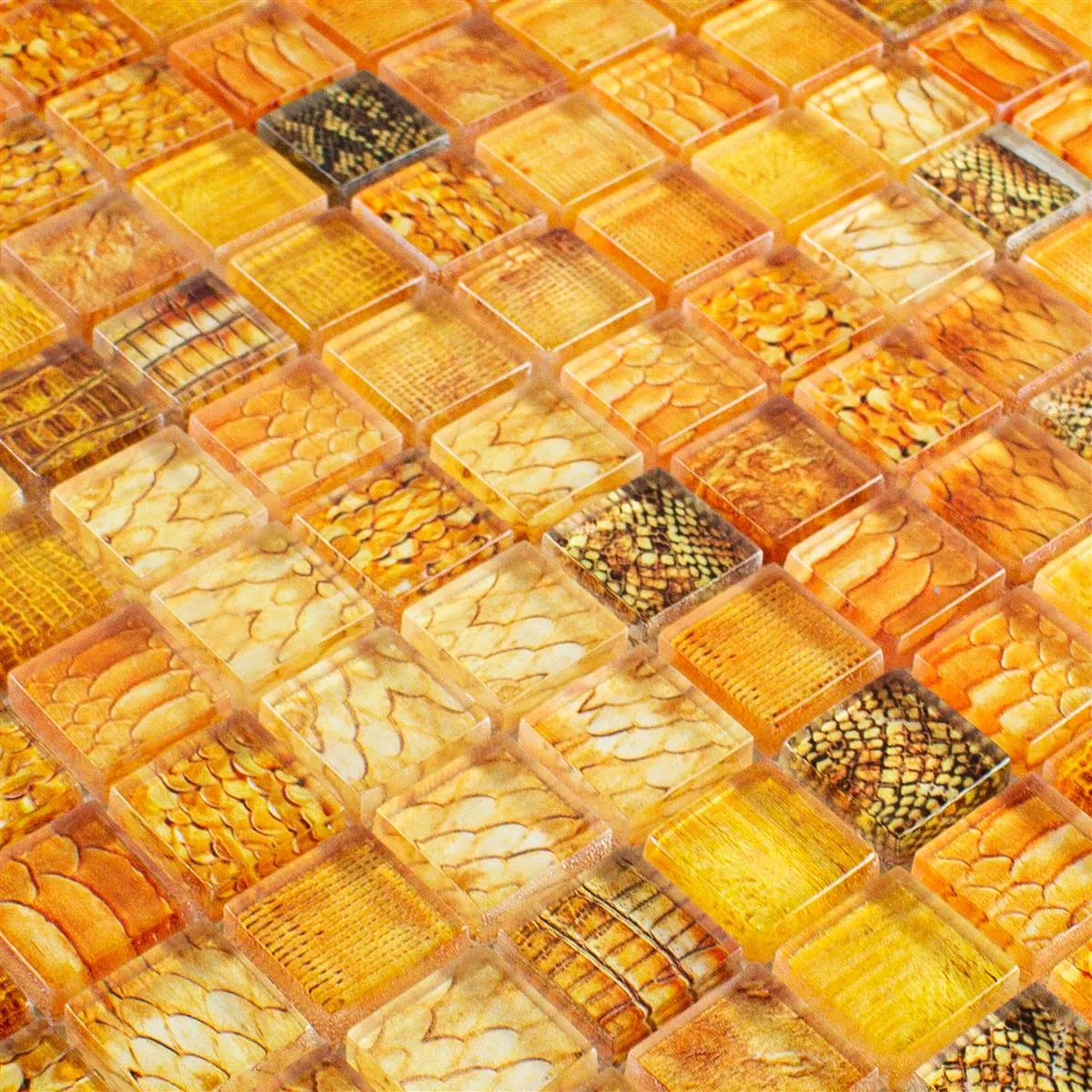 Die Glasmosaikfliesen „Python“ in lebhaftem Orange bringen dynamische Energie und einen Hauch von Exklusivität in Ihre Wandgestaltung. Mit ihrer glänzenden Oberfläche und den hochwertigen Glassteinen bieten diese Mosaikfliesen eine farbenfrohe und pflegeleichte Lösung für jede Wand.