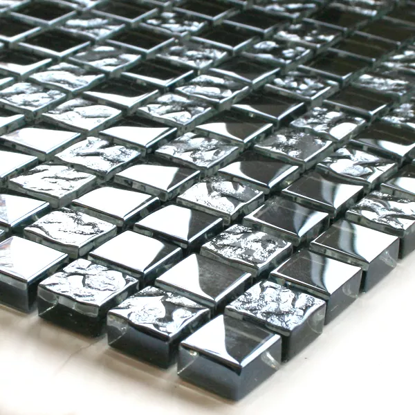 Glasmosaik Fliesen Schwarz Metall Getrommelt