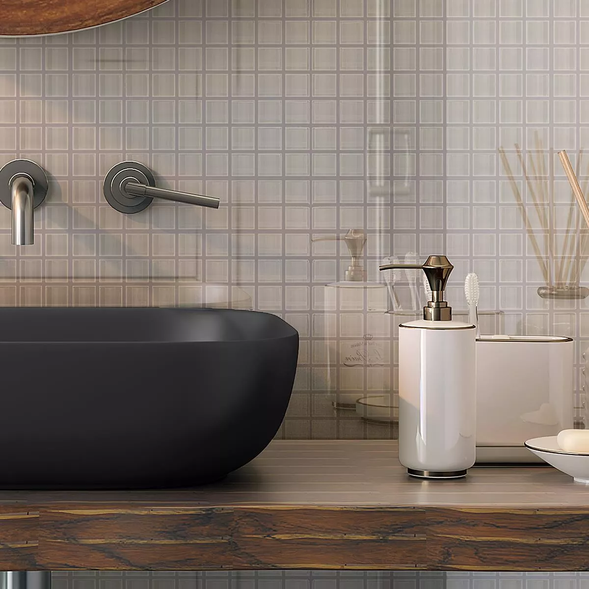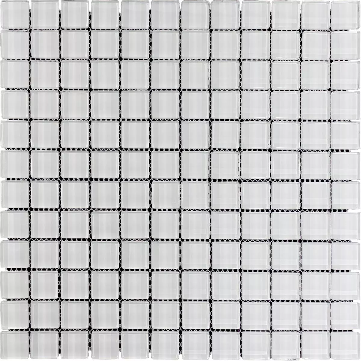 Erschaffen Sie eine strahlend weiße Oase mit unseren Glasmosaik Fliesen Snow Crystal Weiß. Diese quadratischen Wandfliesen mit einer Steingröße von 23x23mm verleihen Ihrem Innenbereich eine zeitlose Eleganz. Die glänzende Oberfläche und eine Fugenbreite von 2mm unterstreichen den reinen Look.
