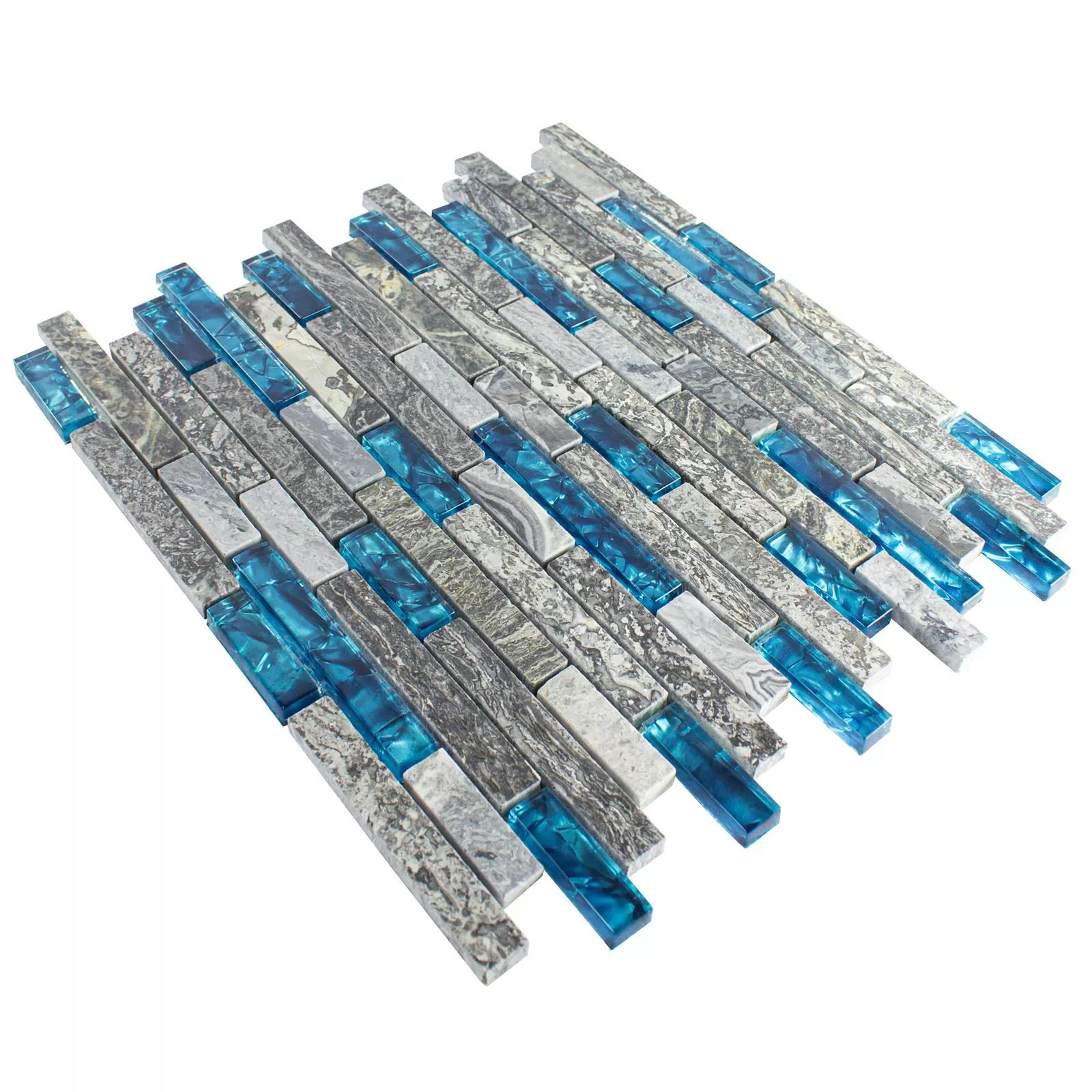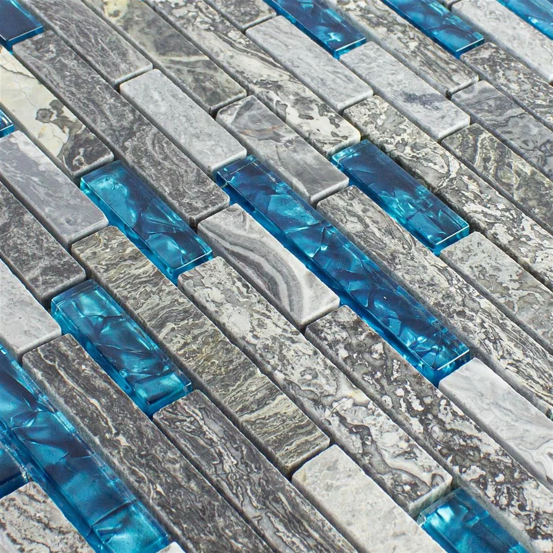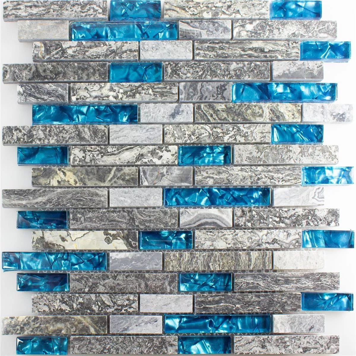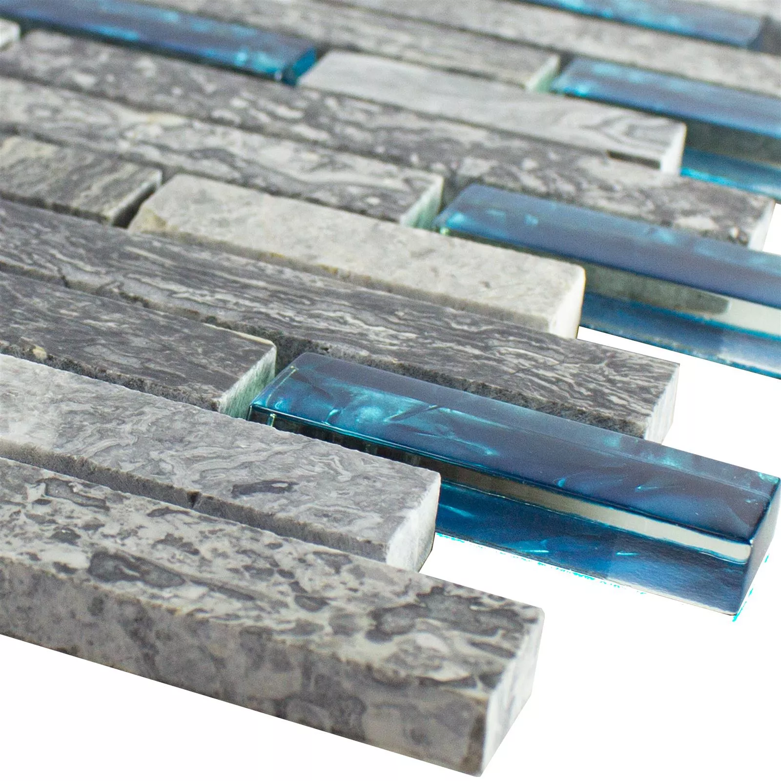 Glasmosaik Natursteinfliesen Manavgat Grau Blau Brick