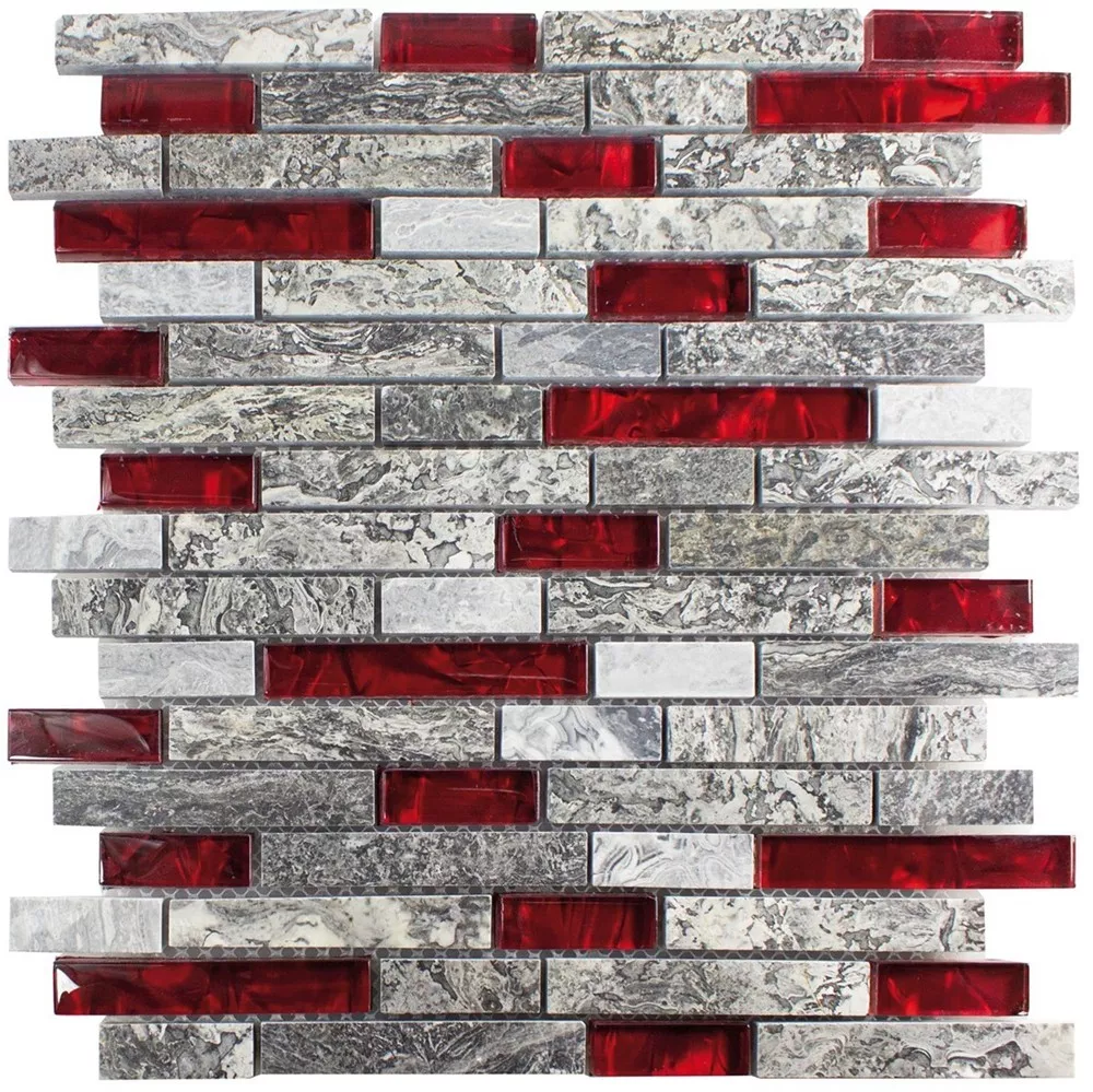Glasmosaik Natursteinfliesen Manavgat Grau Rot Brick