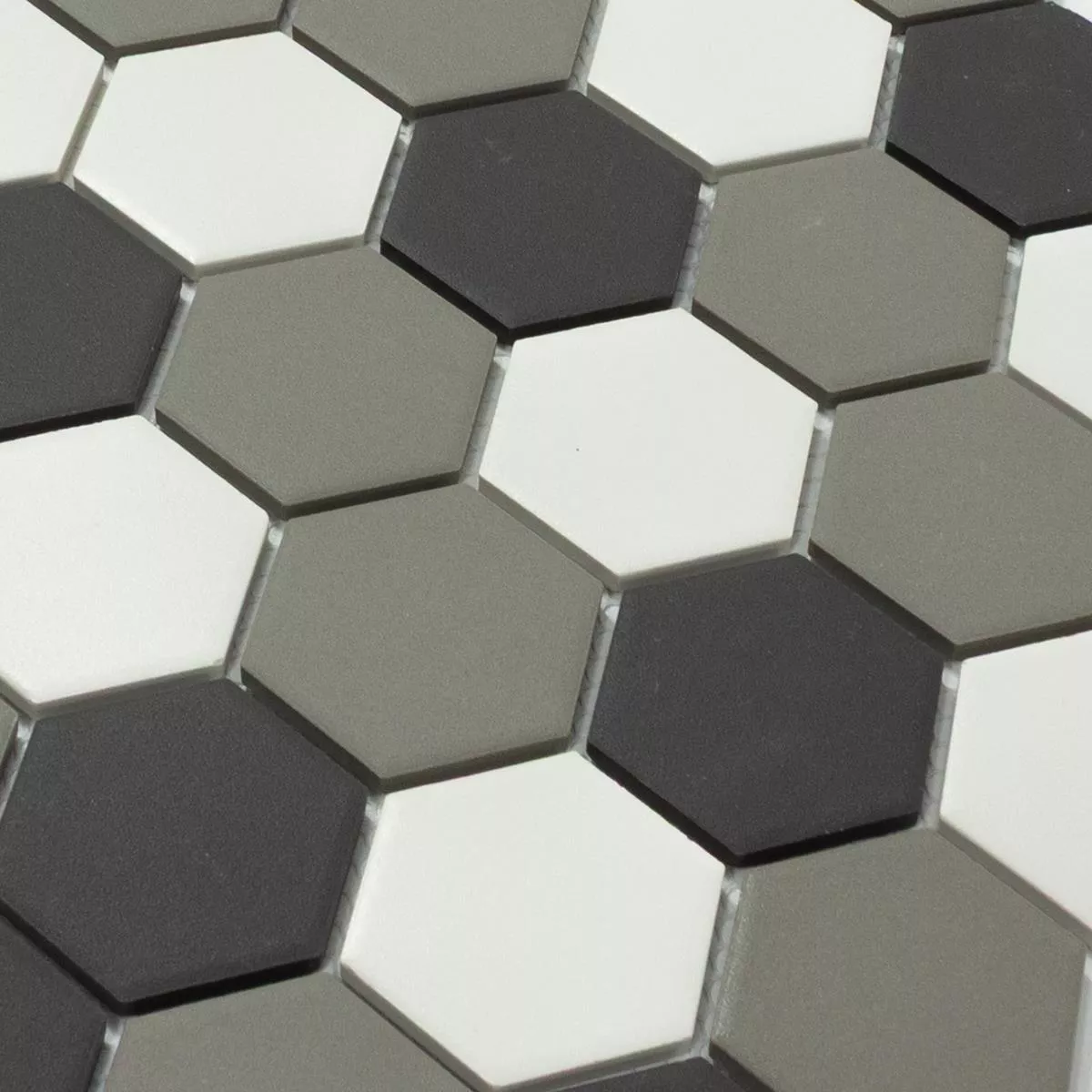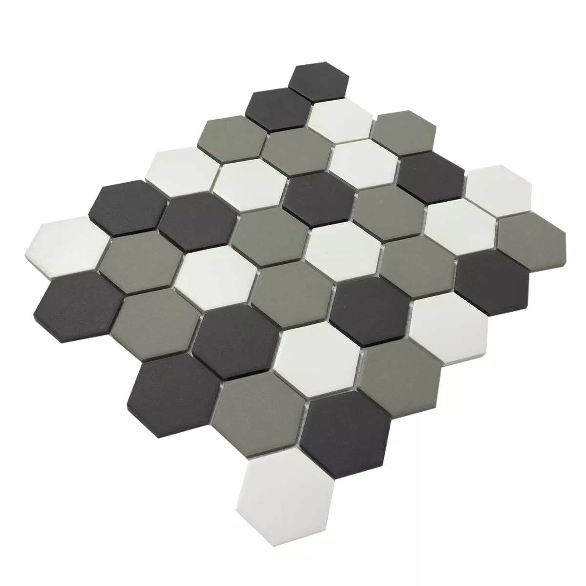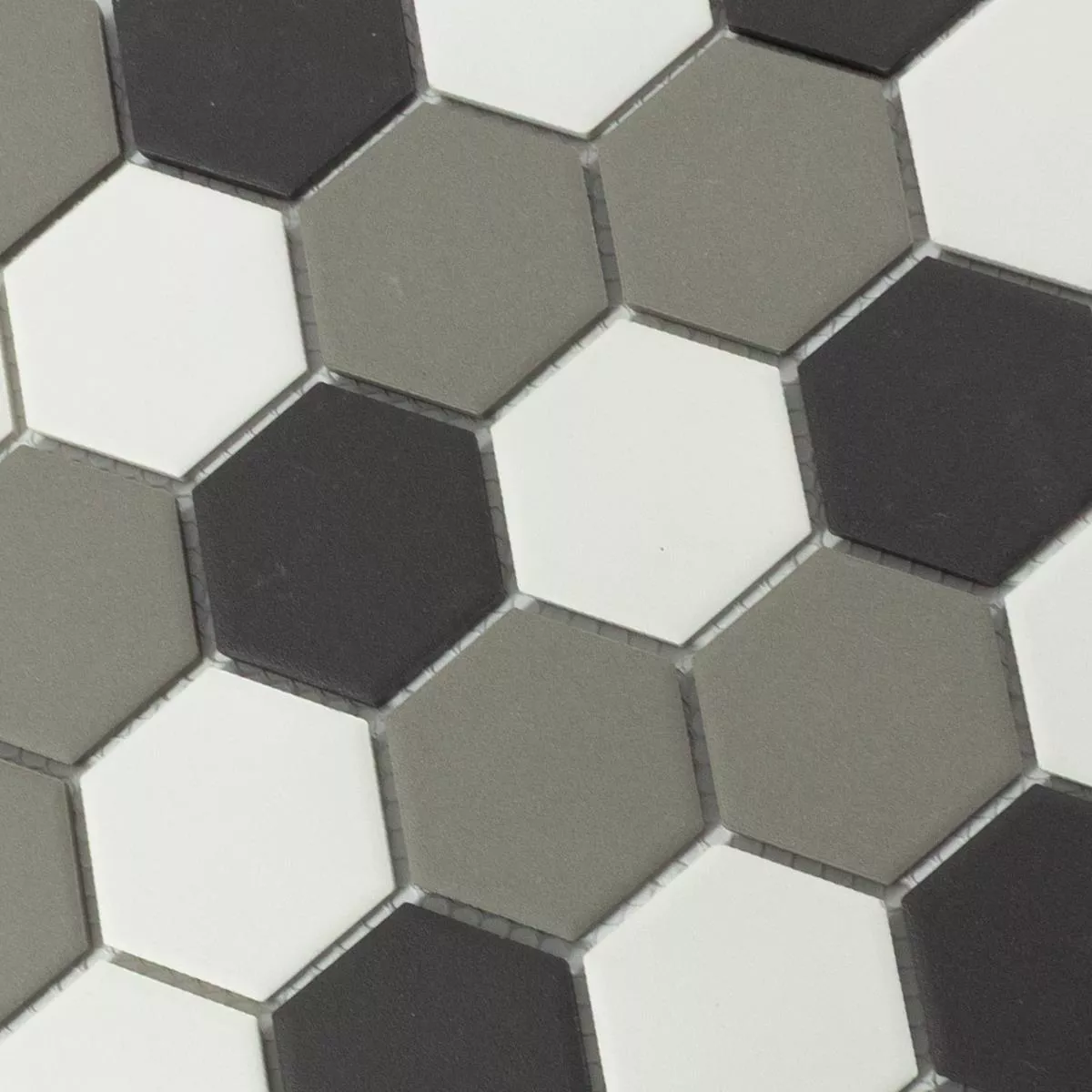 Keramik Mosaikfliese Hexagon Bern Schwarz Weiss