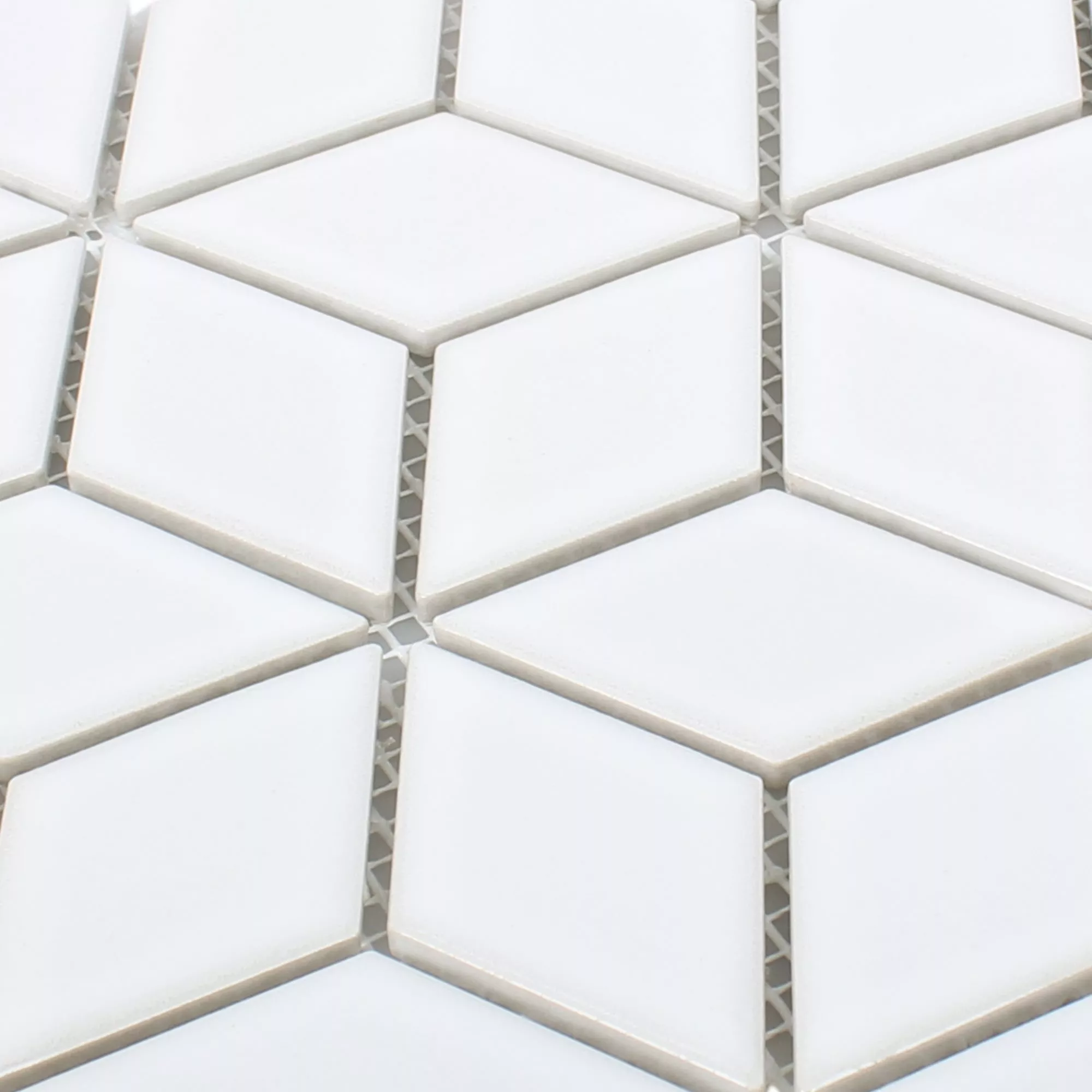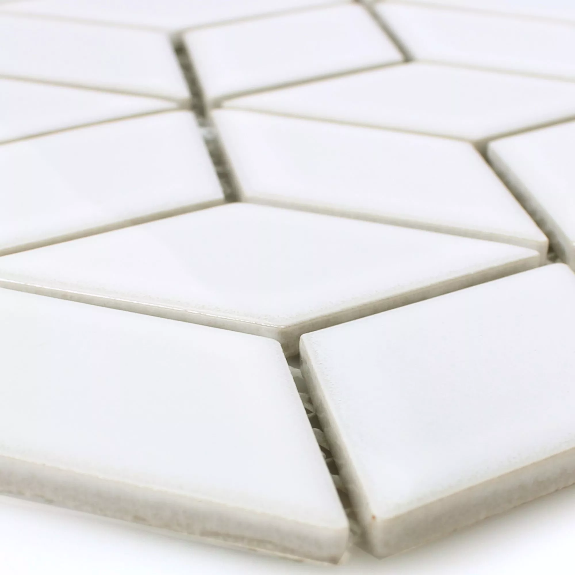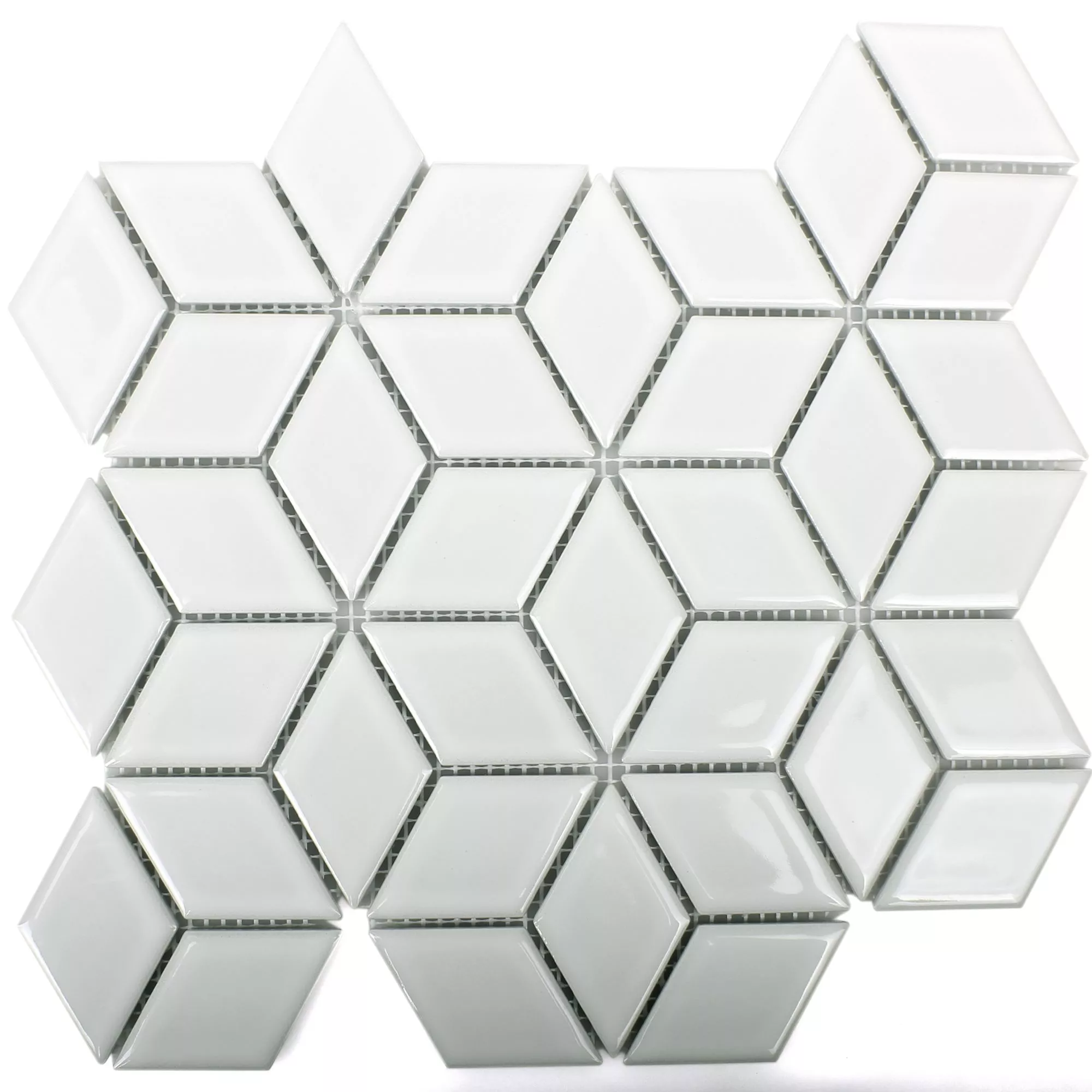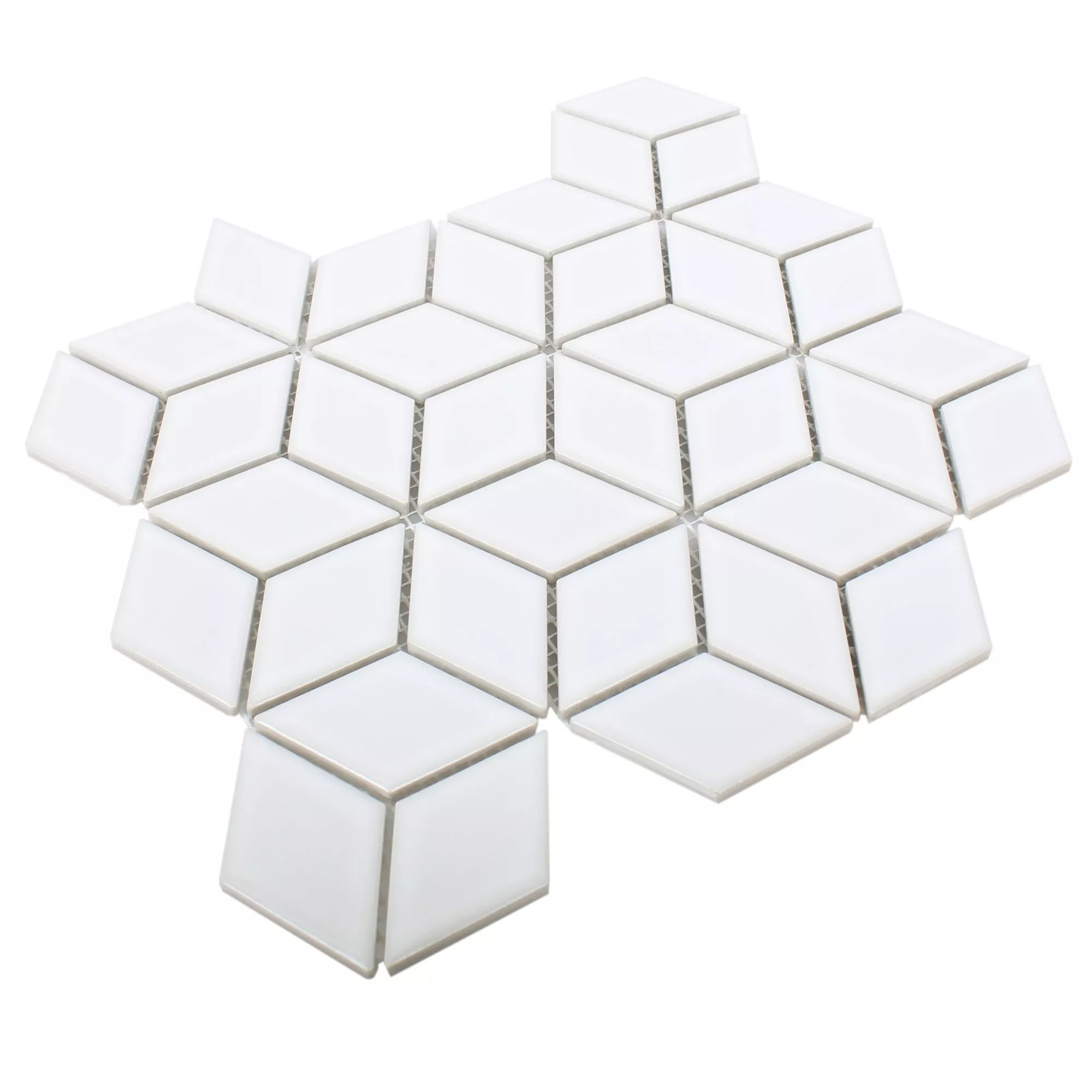 Keramik Mosaikfliesen Cavalier 3D Würfel Weiß Glänzend