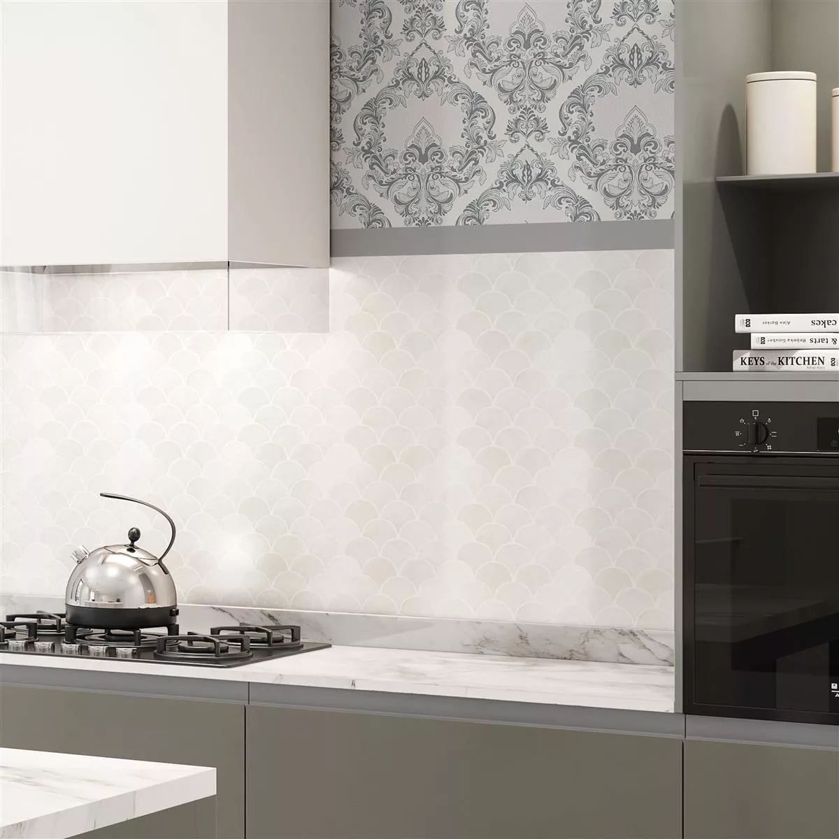 Keramik Mosaikfliesen Eldertown Fächer Weiß