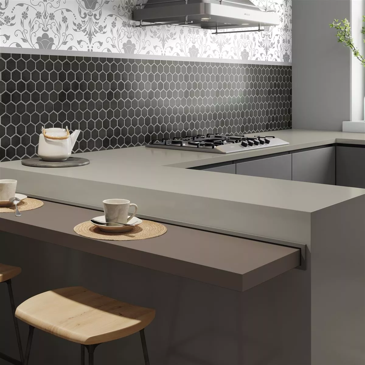 Keramik Mosaikfliesen Eldertown Hexagon Schwarz