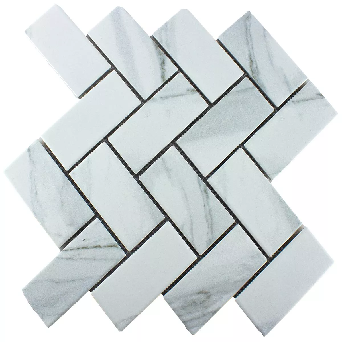 Keramik Mosaikfliesen Fernley Fischgrät Carrara Steinoptik Carrara